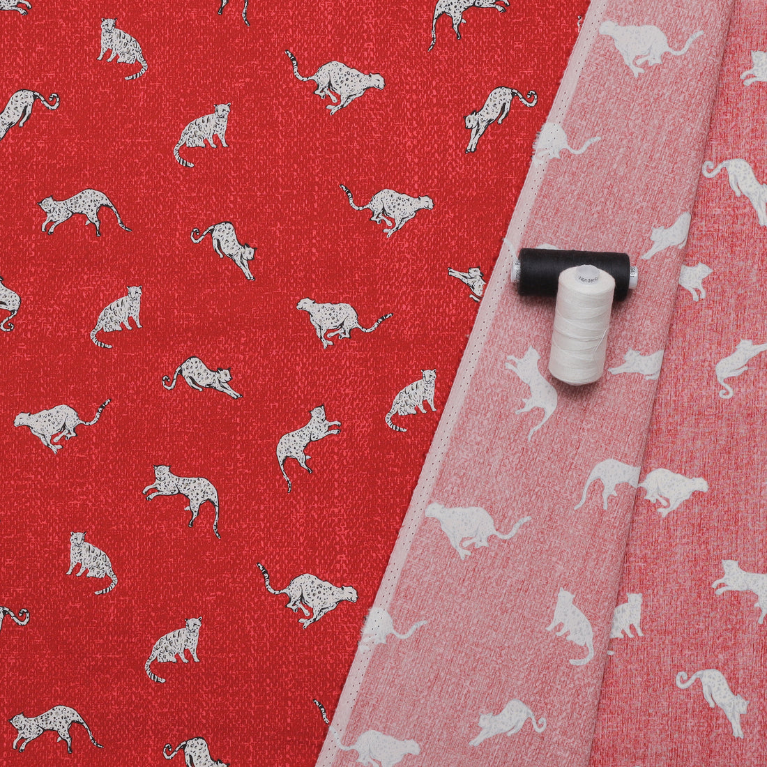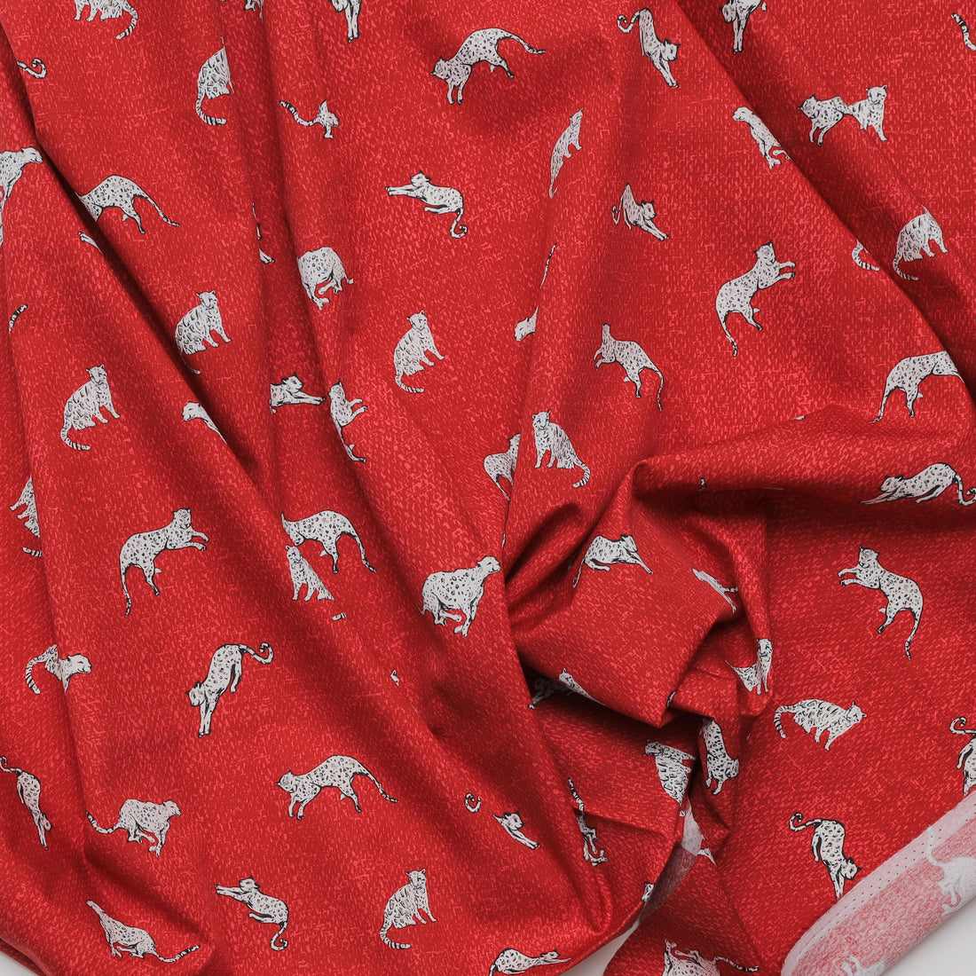 AGF's Cotton Boscage Leopards Ruby fabric is perfect for quilting. The vibrant red fabric is adorned with playful leopards lounging, adding a fun touch to any project. Made of high-quality cotton, this fabric is both durable and soft, making it ideal for a variety of sewing and crafting projects.