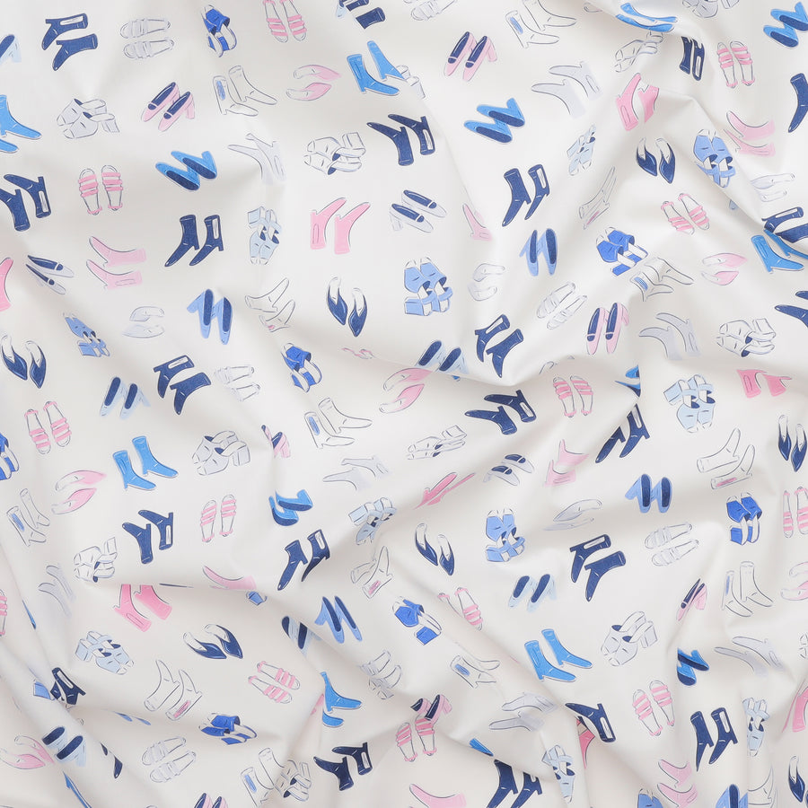 Step into AGF's Way To Roam cotton fabric and feel the bounce and energy of the funky footwear designs. With boots, sandals, and heels, you can be sure that your first steps with AGF are going to be as stylish as they are soft. The perfect balance of pink and blue against a creamy background ensures any project you make will be colorful and cute!