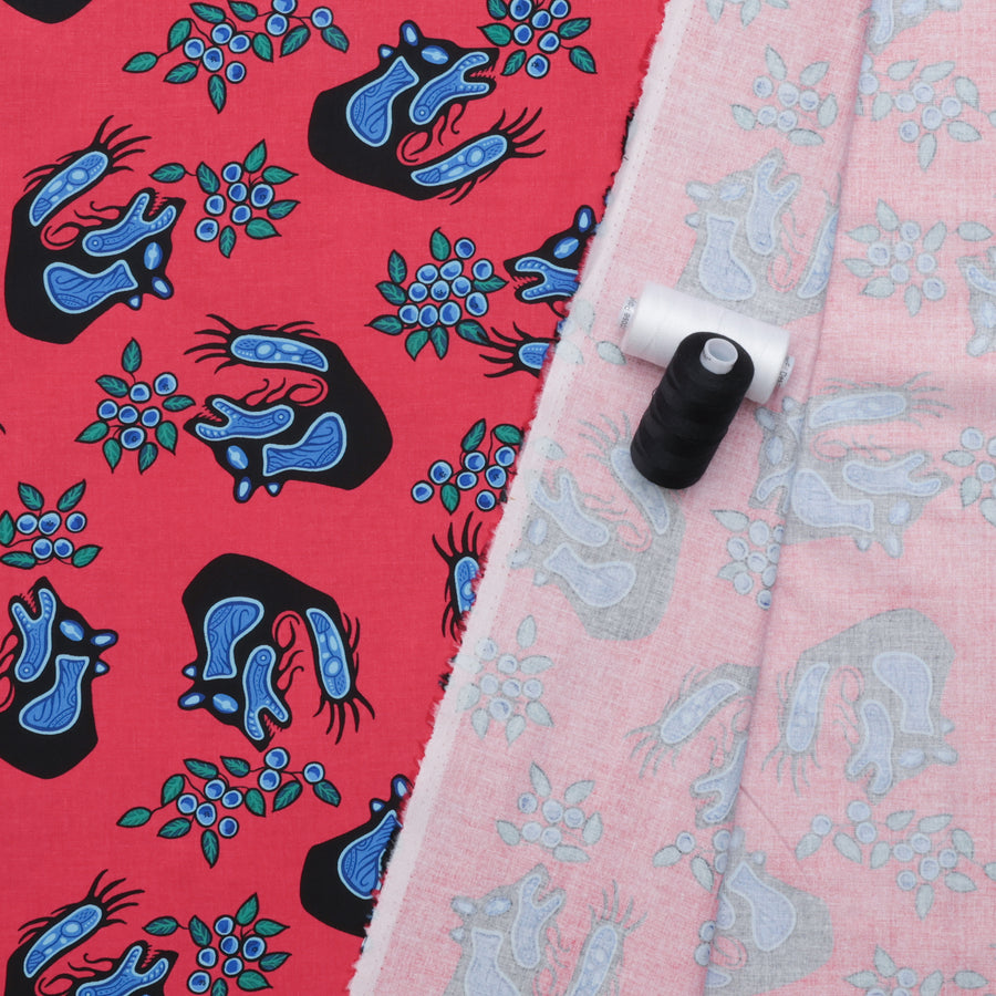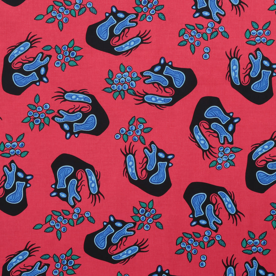Unveil the stunning new native bear fabric, Blueberry & Bear, designed by the talented Native artist C.J. Houle. This captivating fabric features a striking print showcasing a beautiful bear and intricate blueberry patterns, blending cultural artistry design. Perfect for adding a touch of uniqueness to any project, this fabric collection celebrates heritage and creativity in every detail.