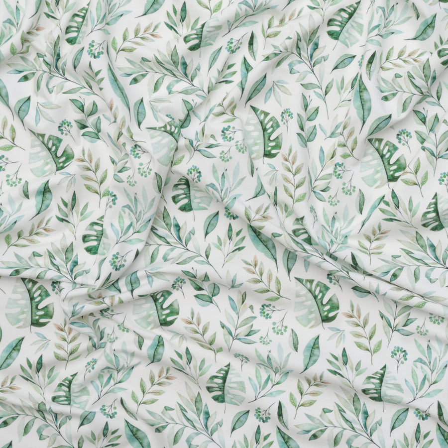 Add some houseplants to your wardrobe with this cotton printed jersey, and its crisp foliage print. Green leaves in a watercolour style decorate a white background on this nature-inspired knit.