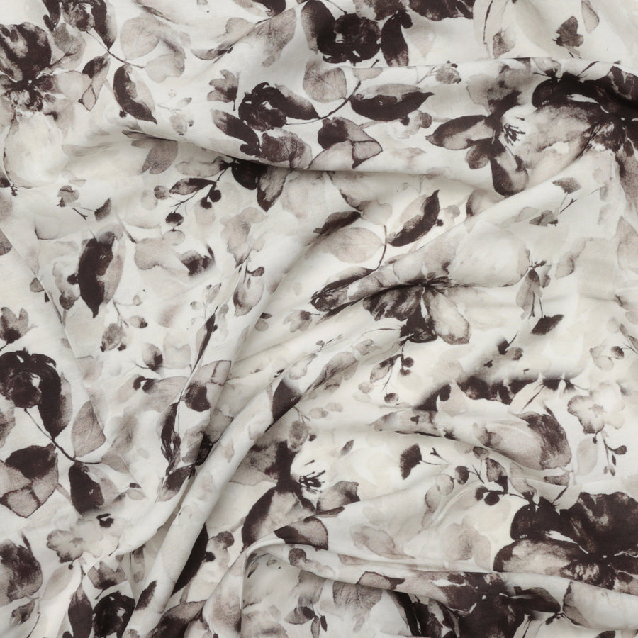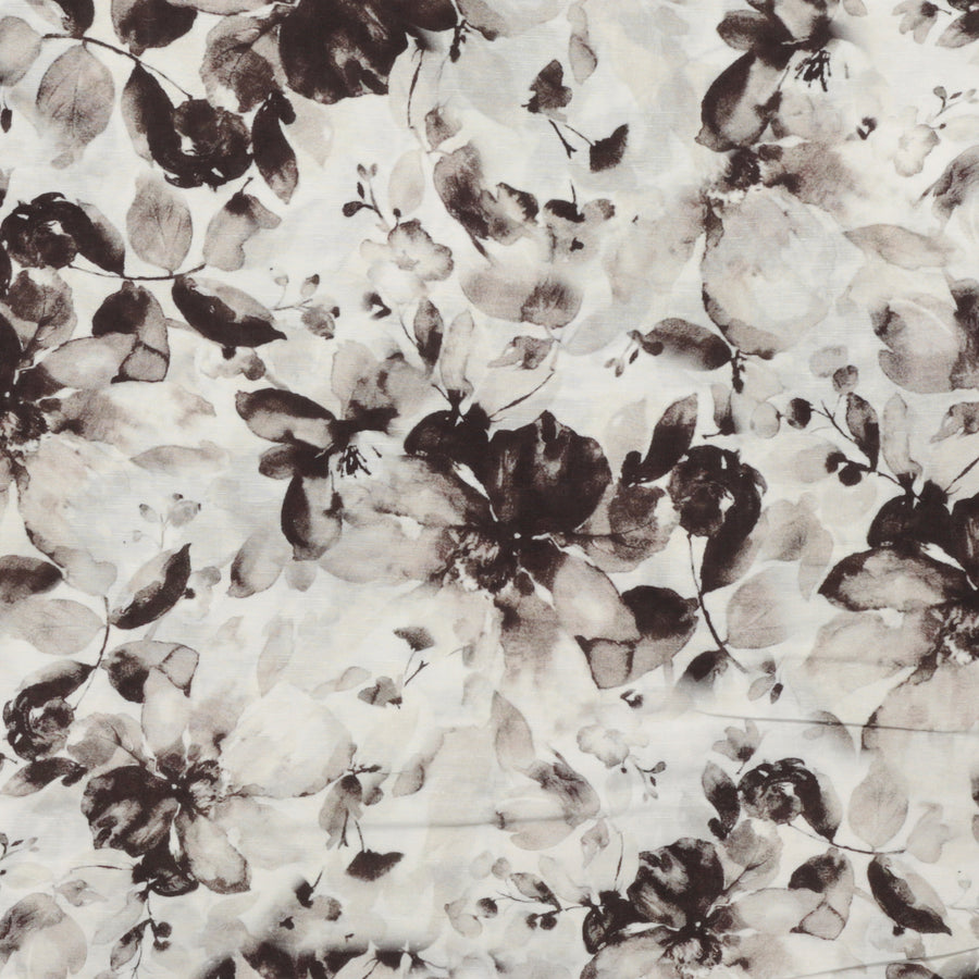 Introducing our playful Linen Blend, featuring a dynamic digital print of black flowers and leaves against an off white background. The high-contrast botanical design is perfect for adding a quirky twist to any outfit. Embrace nature with this unique, eye-catching fabric!