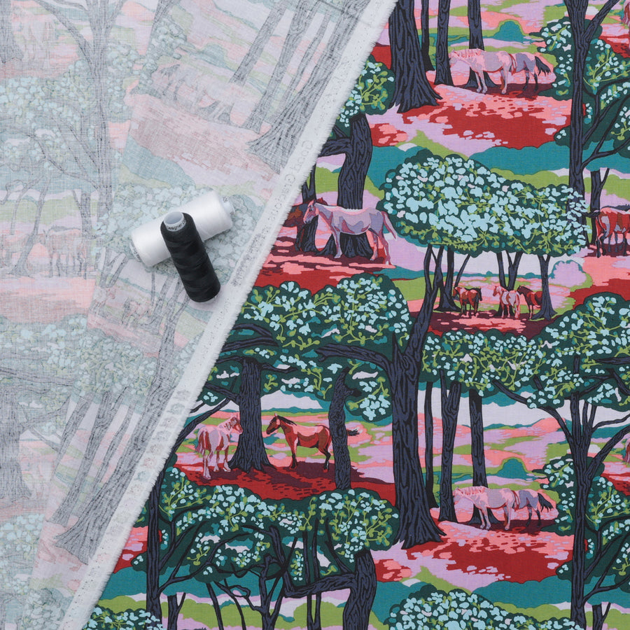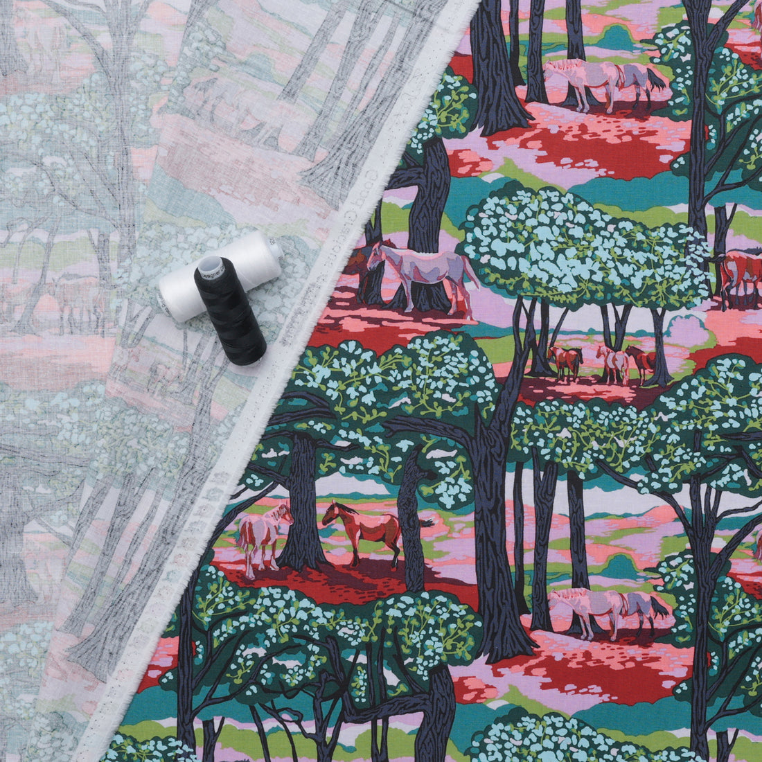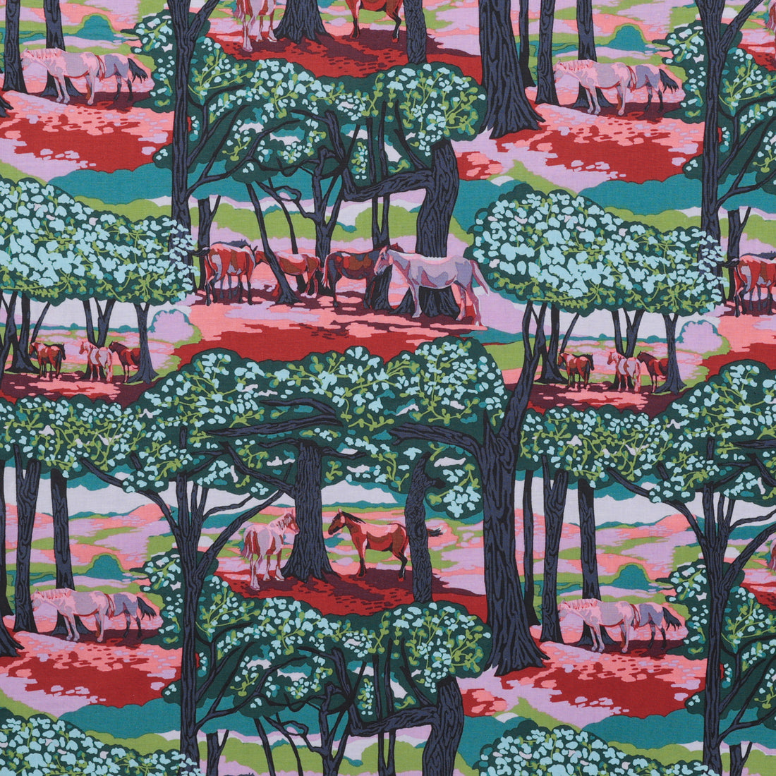 Get ready to embrace your playful side with Anna Maria's Good Gracious collection! This fabric features a stunning forest scene with wild horses and dappled light, adding a touch of whimsy to your projects. Let your creativity run wild with these colorful and unique prints.