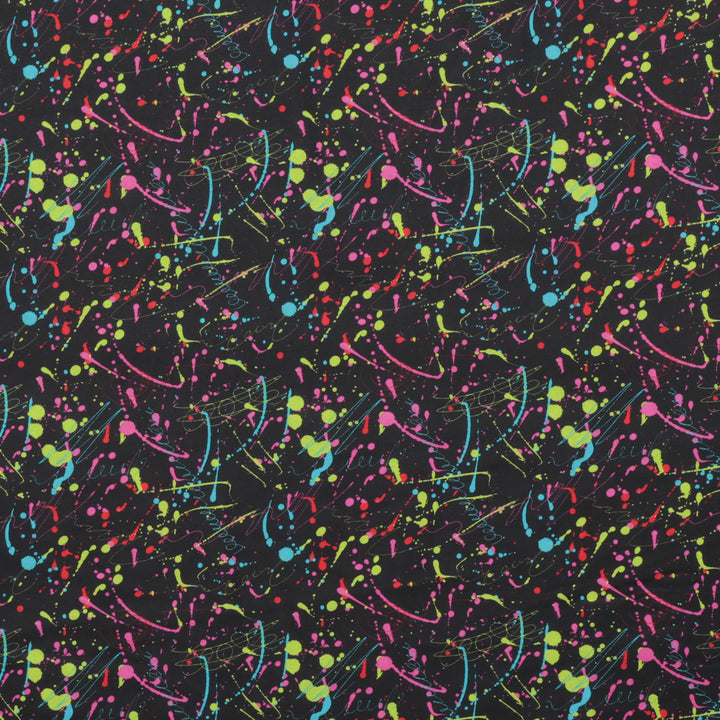 Cotton - Woven - Print - Neon Paint Splatter - Black