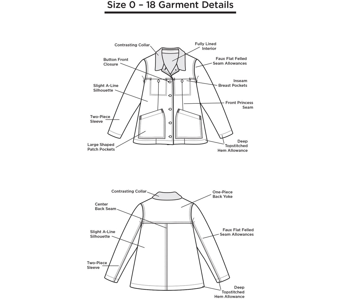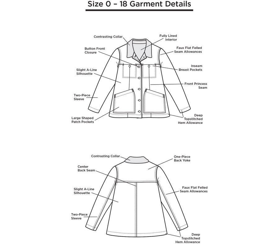 The Thayer is a workwear inspired jacket that will take you from fall to winter with ease. It features a slight A-line shape, roomy patch pockets and inseam yoke pockets, two-piece sleeves, and is fully lined for plenty of warmth. Front princess seams ensure a great fit.