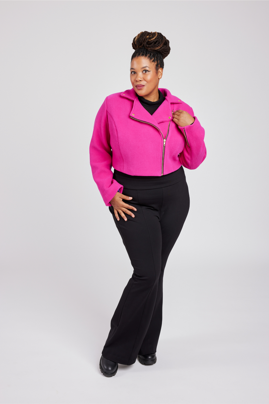 Front princess seams and back fisheye darts provide essential shaping for curves, along with two-piece sleeves with a full bicep option. Choose between cropped or hip length and top it off with large snaps for a timeless jacket you'll wear for years to come.