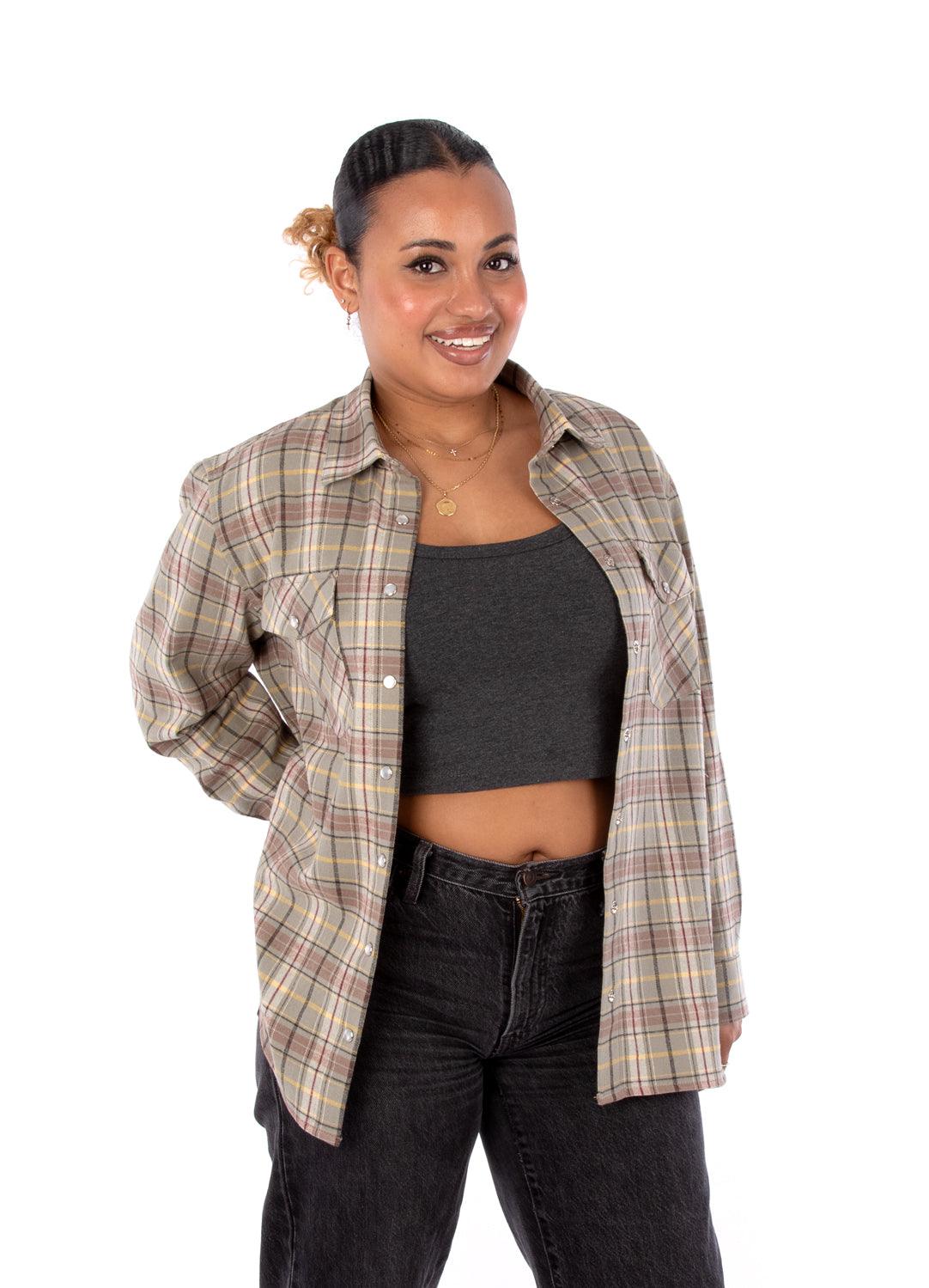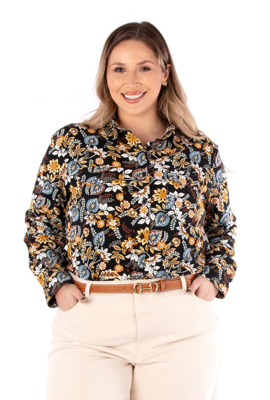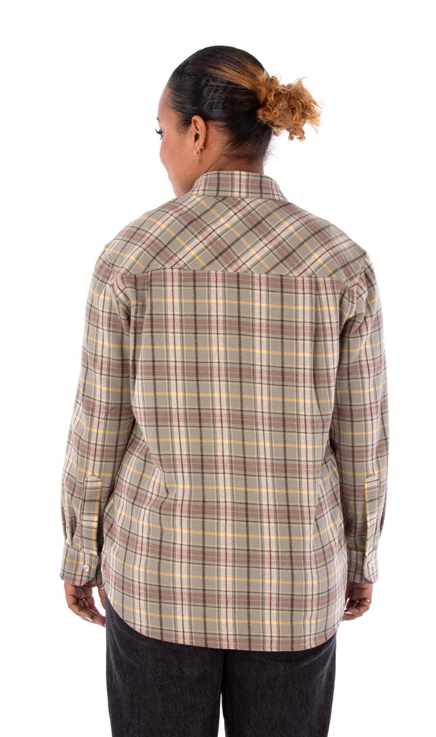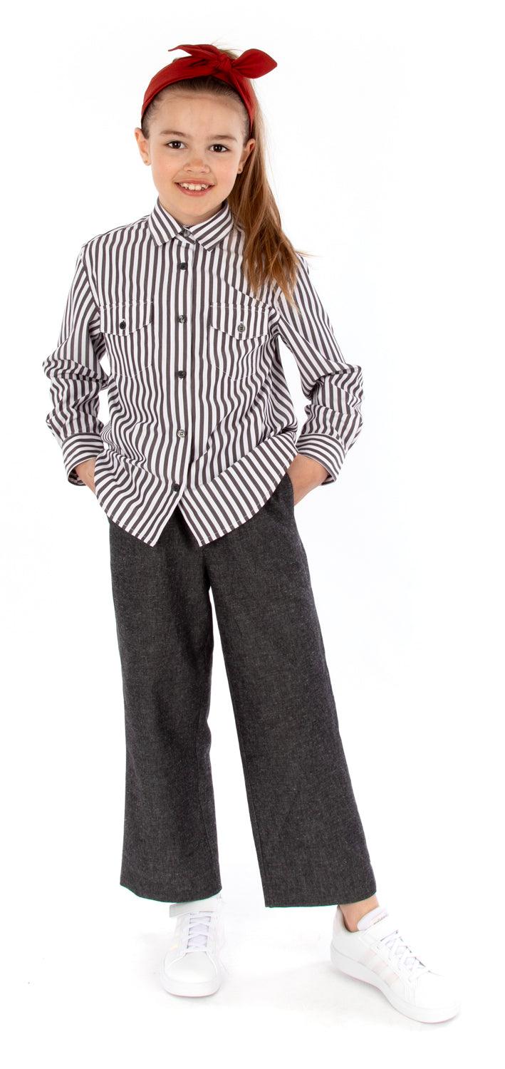 Classic button-up shirt and shirtdress, featuring set-in sleeves, two flat pleats at the back and a rounded hem. Patch pockets with flaps on the chest (two pocket styles included). The dress version (B) is above the knee and includes additional patch pockets, a tie belt and belt loops for waist definition.