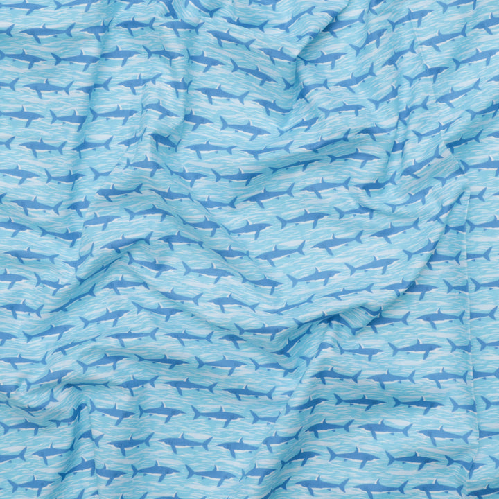 Makower UK - Cotton - Deep Blue Sea - Sea Sharks - Light Blue