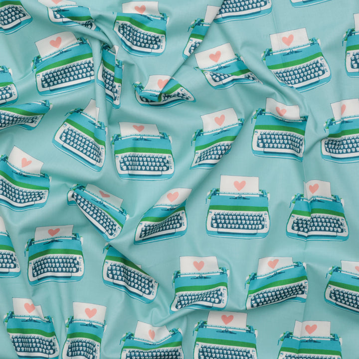 Ruby Star - Cotton - Best Day Ever - Typewriters - Turquoise