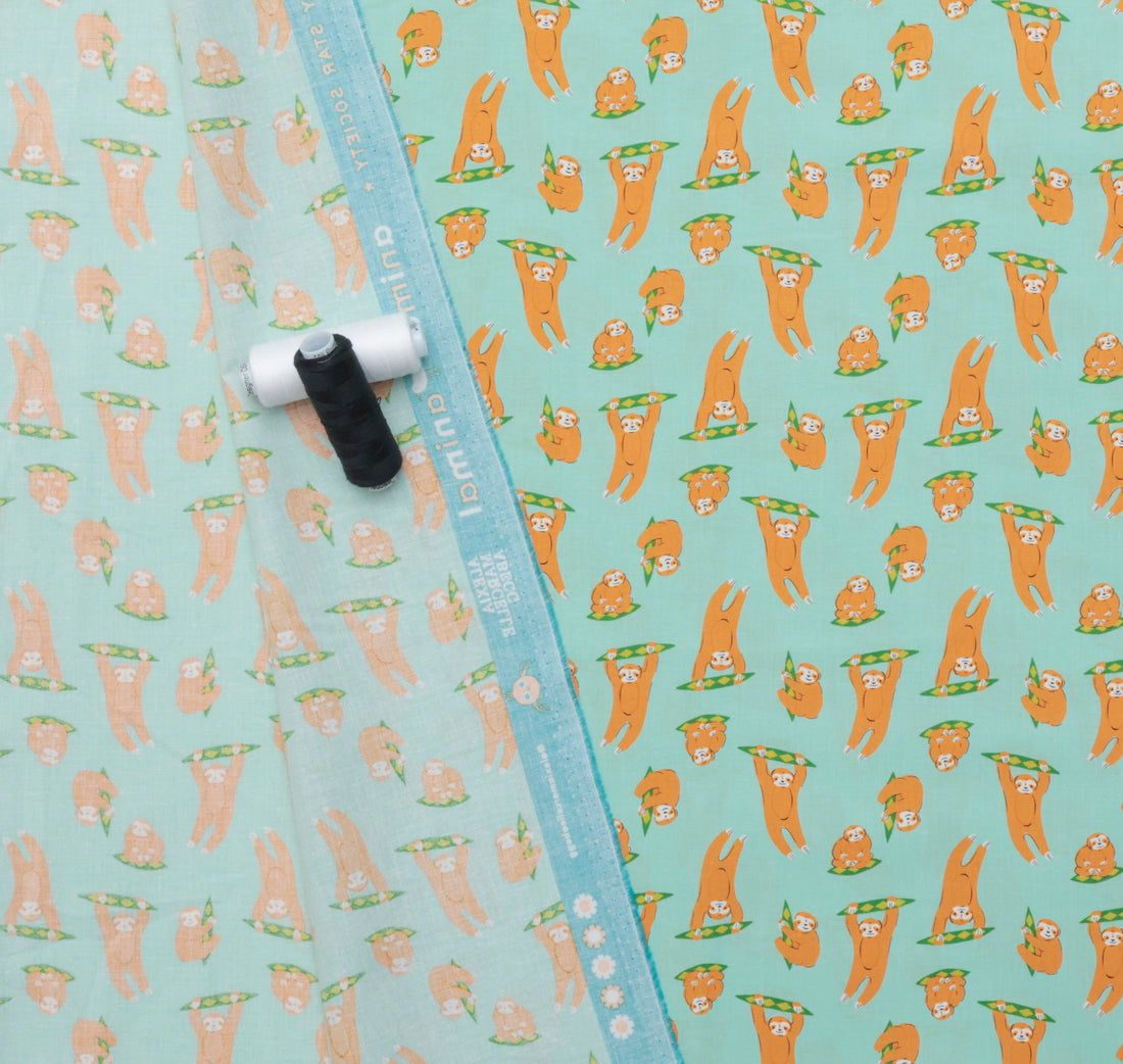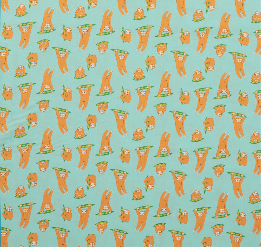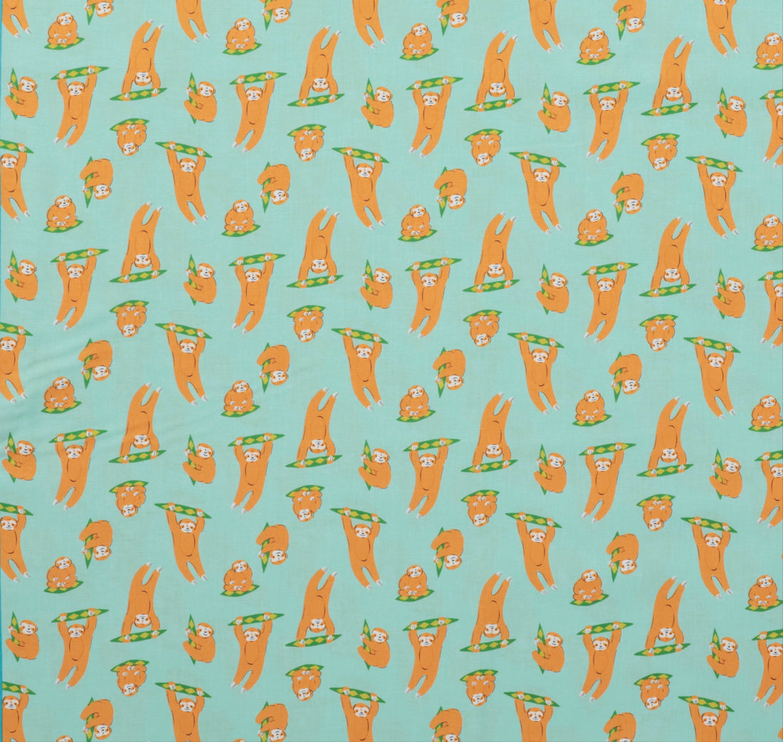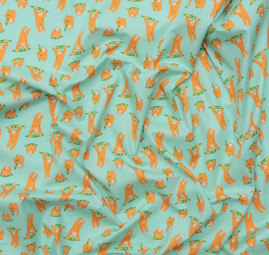 Unleash your inner child and have a blast with this collaborative collection from Ruby Star Society! This print showcases adorable brown and tan sloths hanging around on a minty blue background. Unleash your creativity with this fabric that's as unique as you are!