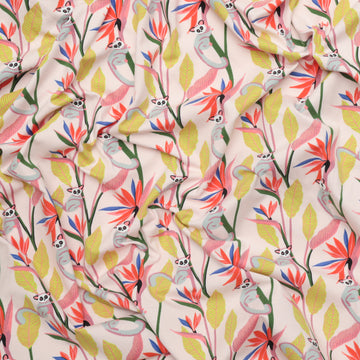 Cotton Blend - Italian Jersey - Neon Florals - Yellow + Pink