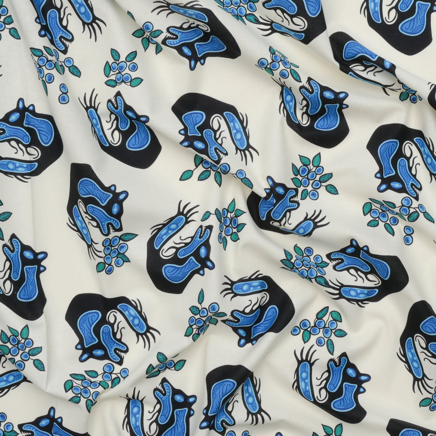 Unveil the stunning new native bear fabric, Blueberry & Bear, designed by the talented Native artist C.J. Houle. This captivating fabric features a striking print showcasing a beautiful bear and intricate blueberry patterns, blending cultural artistry design. Perfect for adding a touch of uniqueness to any project, this fabric collection celebrates heritage and creativity in every detail.