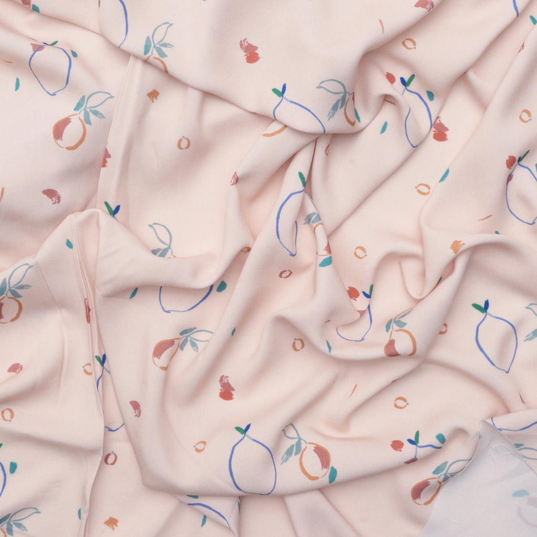 Bring to life your dream dress with Katia's Ecovero Viscose - Fruits Landscapes! A peachy hue, soft to the touch, and featuring lively outlines of bright fruit, it's the perfect fabric for transforming into something enchanting! Let Ecovero Viscose be your canvas for creating magical fashion - it's like being plucked from a fairytale!