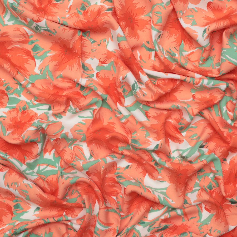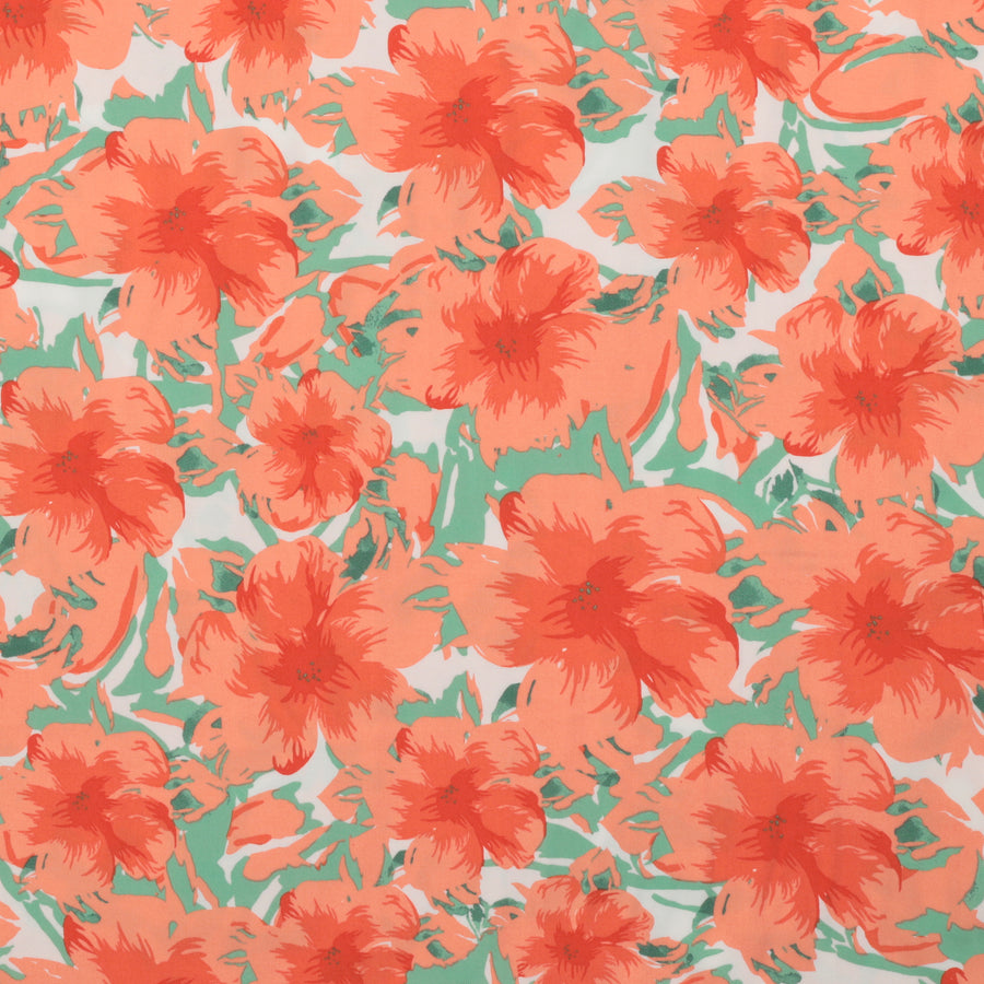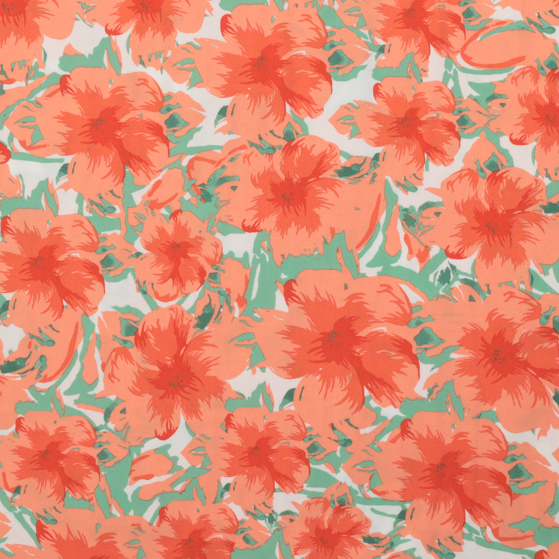 Dive into summer in style with our Rayon Twill Print in White Peach! This lightweight fabric has a beautiful flowing drape and features vibrant hibiscus. Enjoy a bright summer look that celebrates these tropical flowers. Let's get summer started!