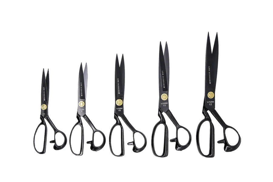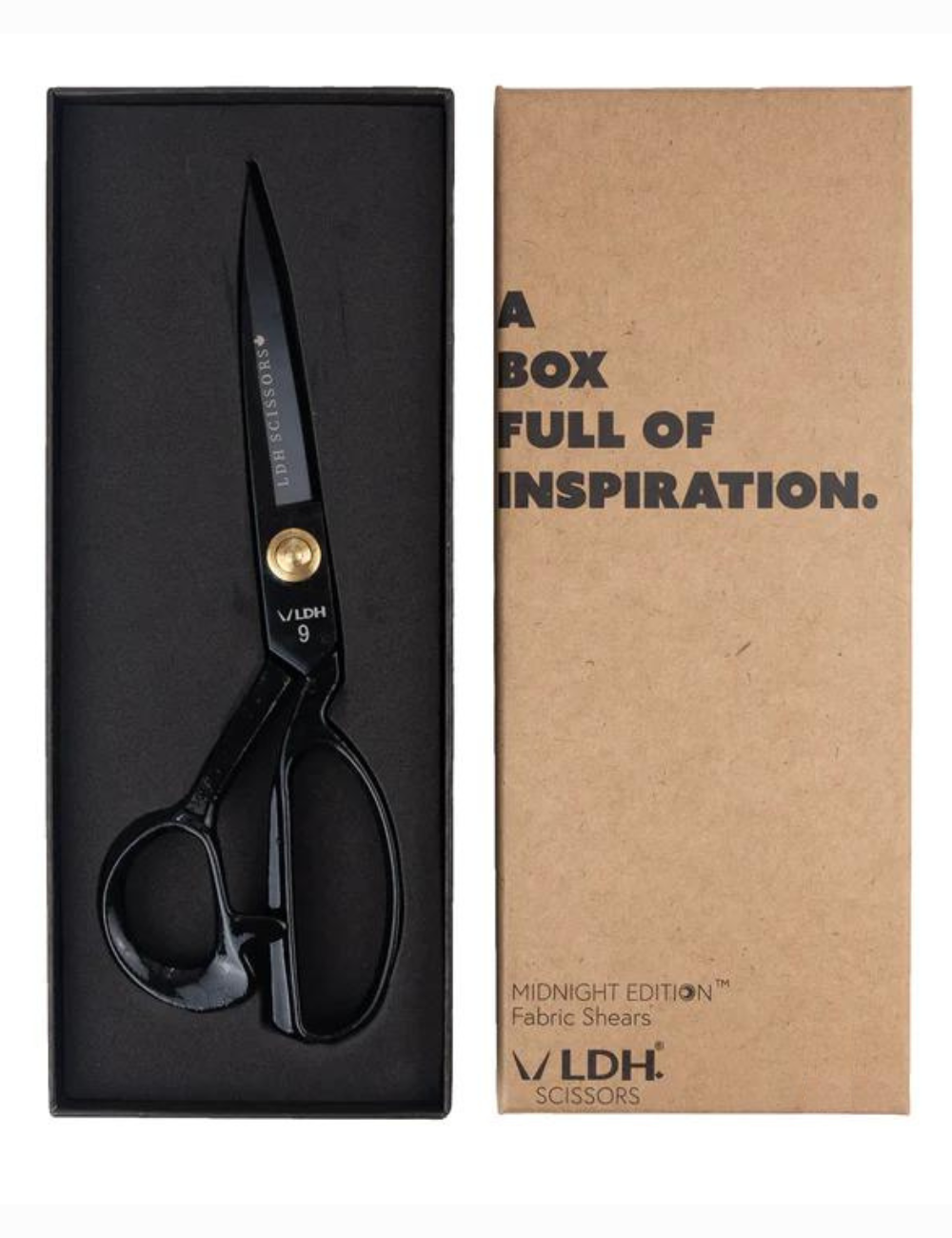 The Midnight Edition Fabric Shears are an industrial-grade professional tool. They are handcrafted by a scissor master and are insured with a 10-year warranty through LDH.