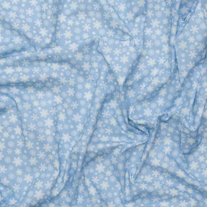 Camelot - Cotton - Winter Land - Scattered Snowflakes - Blue