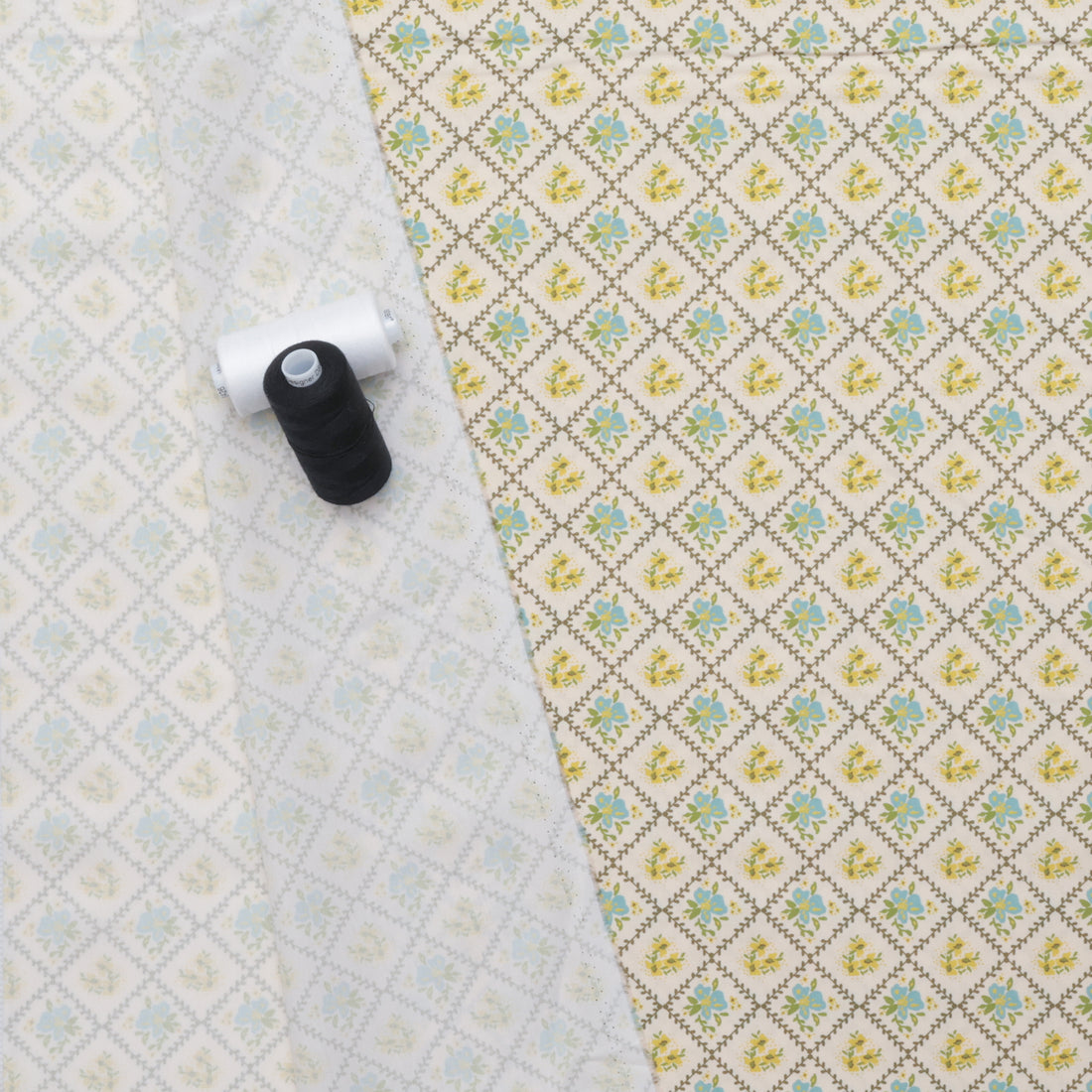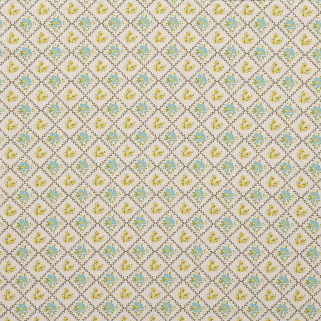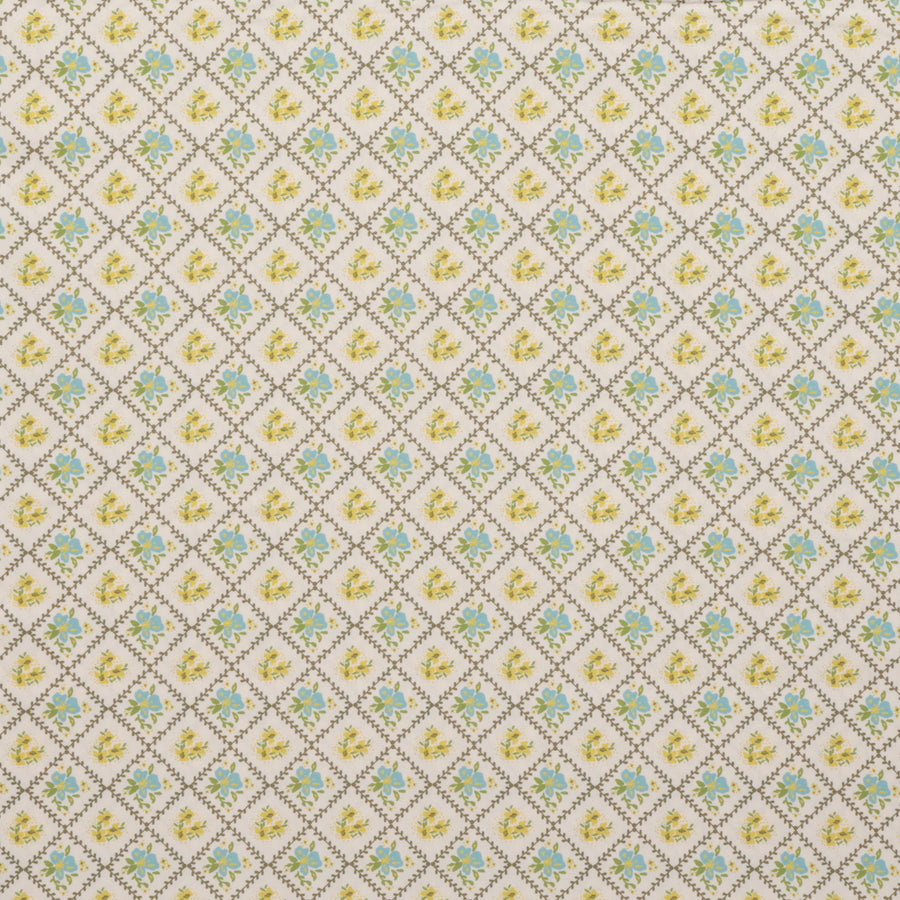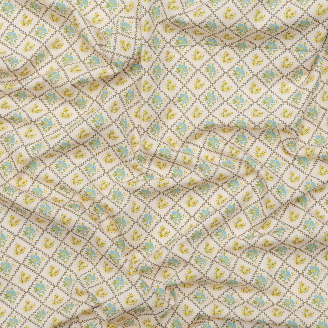 Tags: Floral, Grid, Symmetrical, Cream, Blue, Yellow, Nostalgic, Quilting Cotton