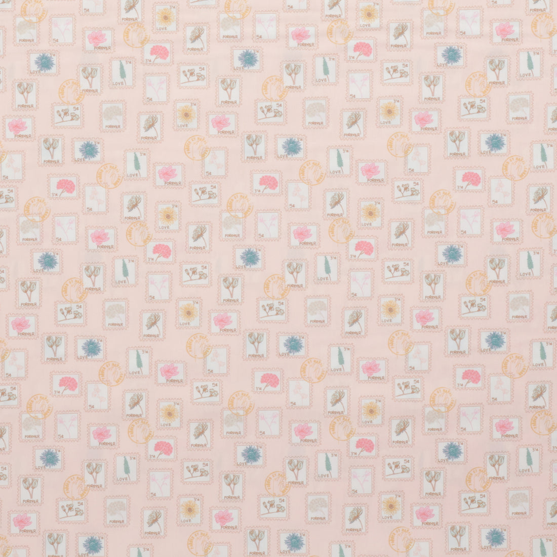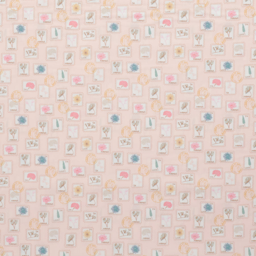 Tags: Stamps, Mail, Letters, Stationery, Flowers, Floral, Pink, Blue, Yellow, Quilting Cotton