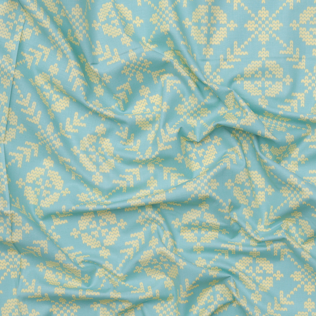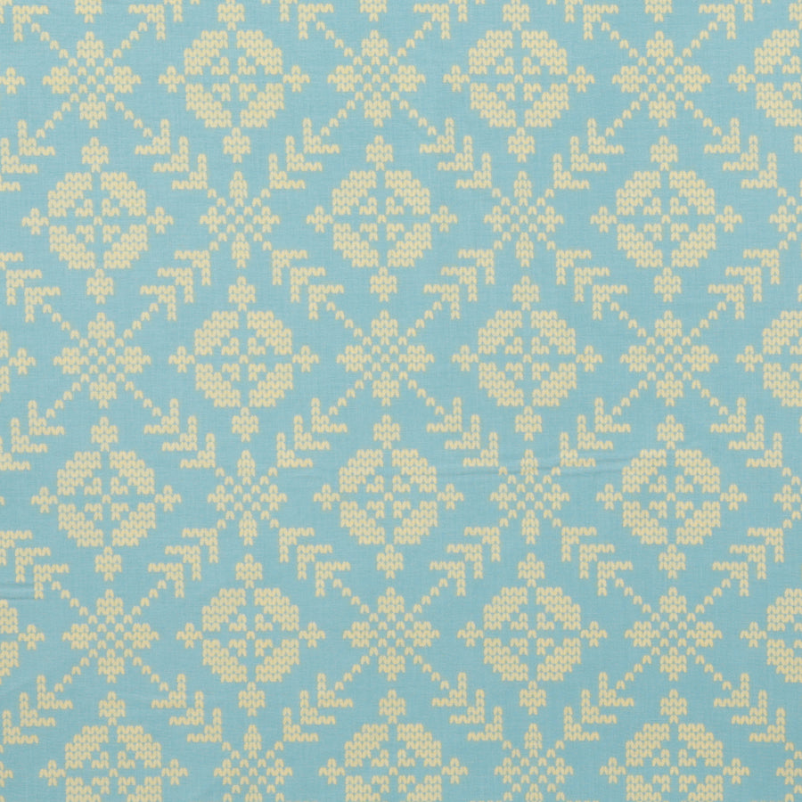Get crafty with Anna Maria's Good Gracious cotton fabric in an iconic Fair Isle pattern. Perfect for quilting and garment projects, this versatile fabric features shades of blue and teal in an iconic knitting pattern. Let your imagination run wild!