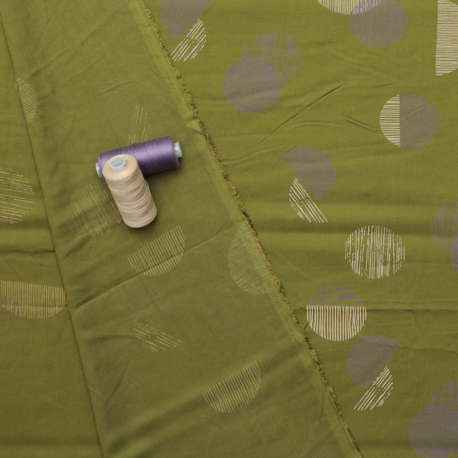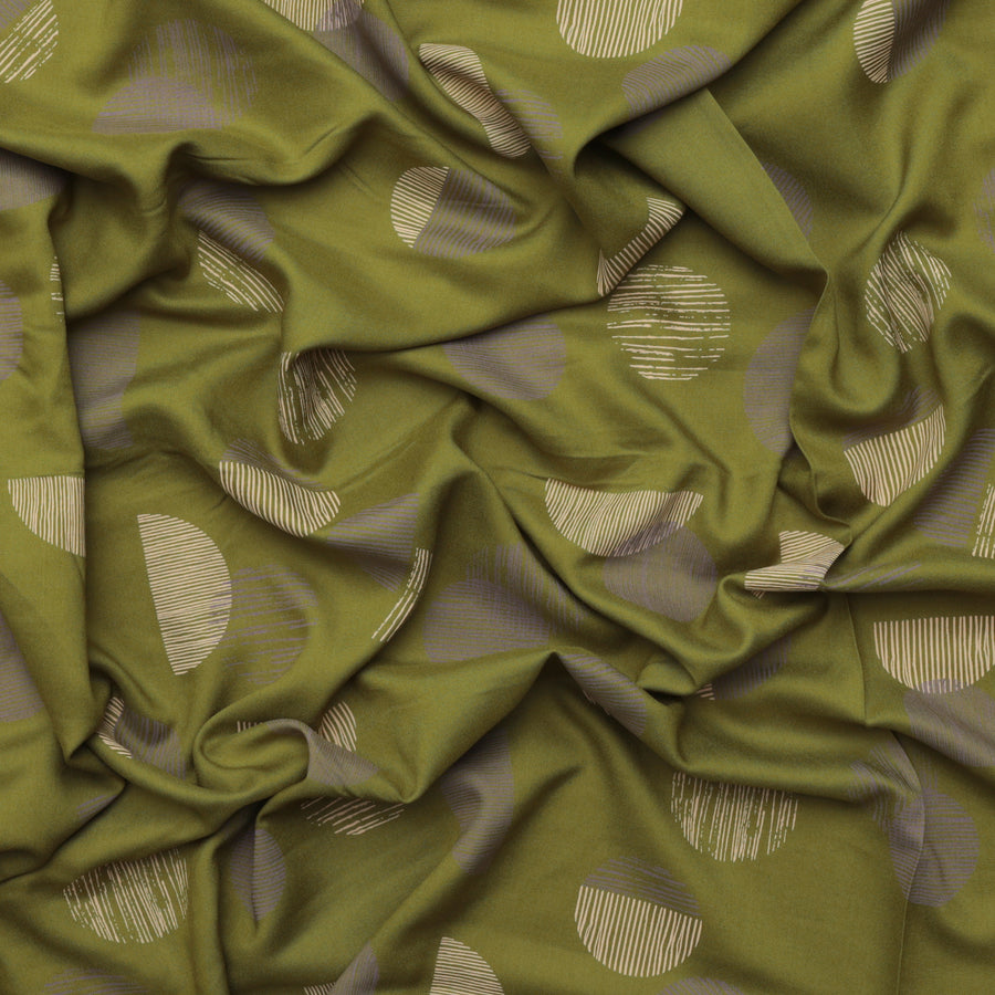Step into the vibrant world of the 1960s with Atelier Brunette's Viscose - Jane - Matcha Leaf. Let the multi-coloured circles and thin lines transport you to a time of fun and bold fashion. Perfect for adding a touch of retro charm to any project!