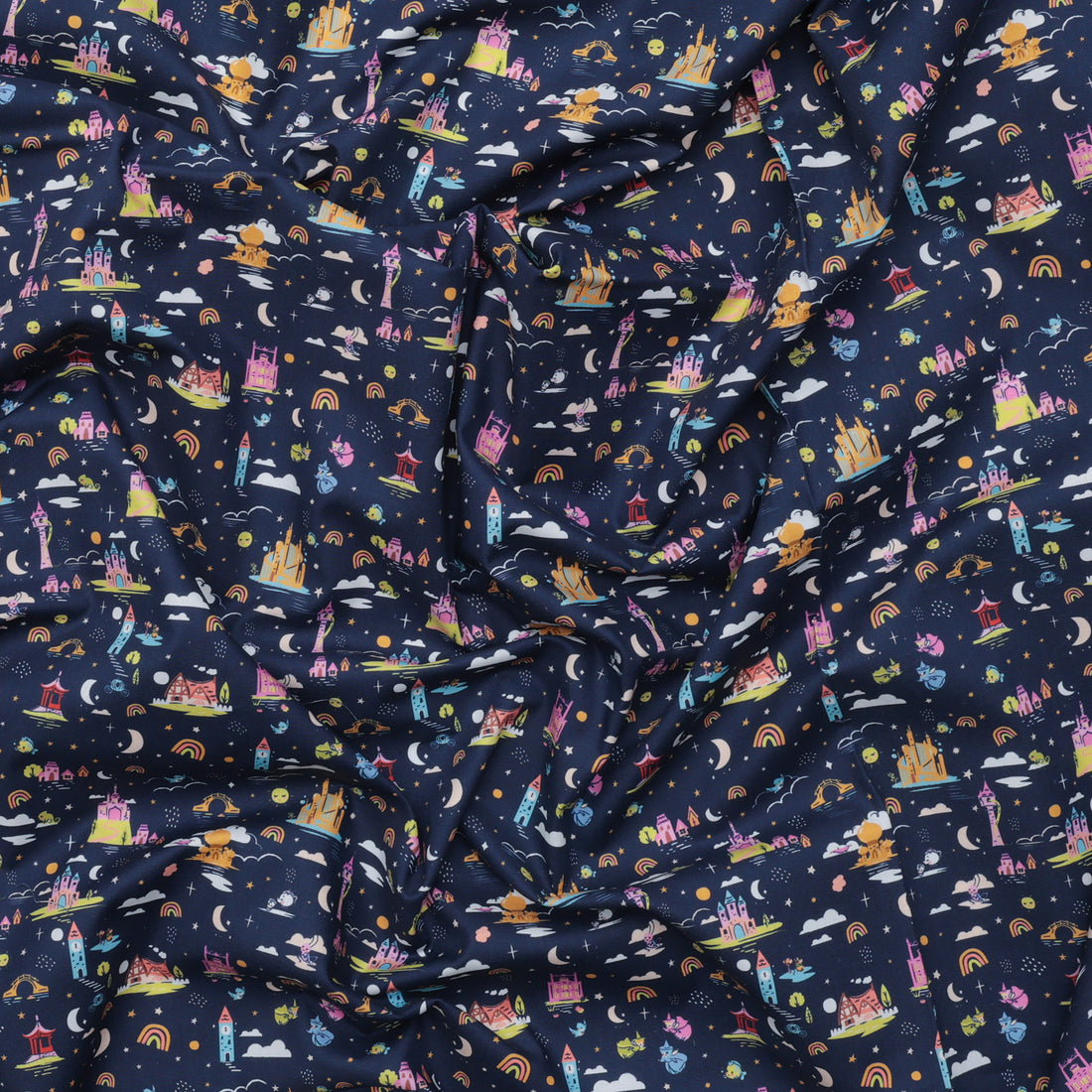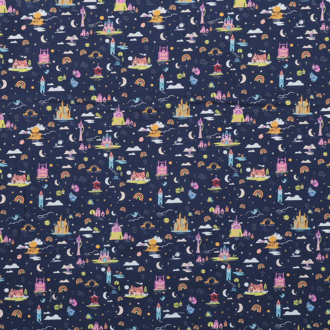 Sleep soundly in royal style with our Camelot Licenced Cotton! This navy cotton is adorned with Disney Princess patterns, featuring Sleeping Beauty, Ariel, Cinderella, Snow White, Rapunzel, Jasmine, Mulan, and all their side kicks. Perfect for quilting and adding a touch of magic to any project. (Sweet dreams, princess!)