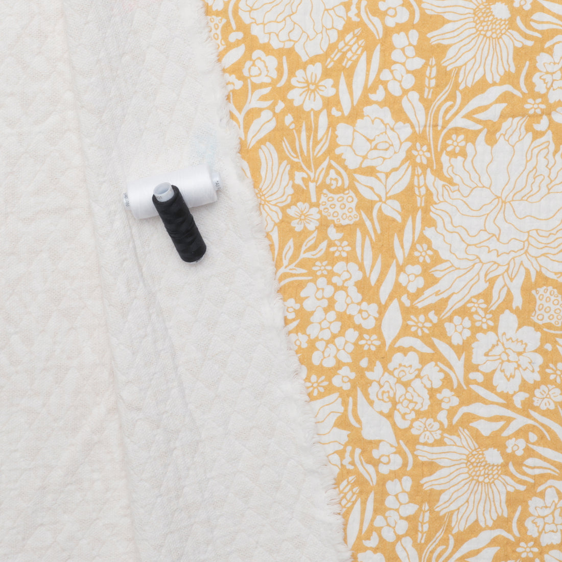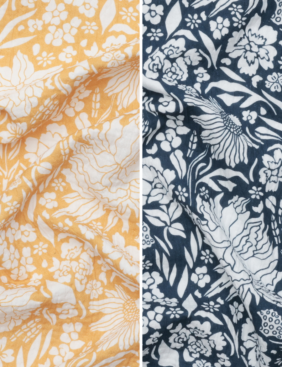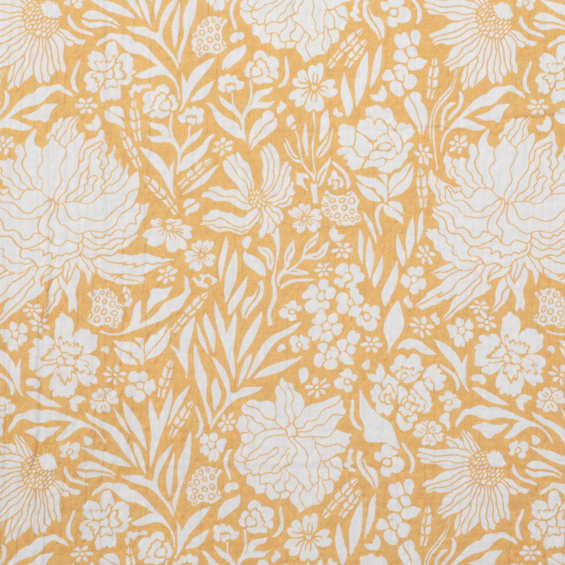 The bold floral print on this 100% cotton fabric means Dylan stands out from the crowd. The heavier hand and strong cotton make for a fabric that can stand up to heavy wear. Available in white floral on a yellow or navy blue background.
