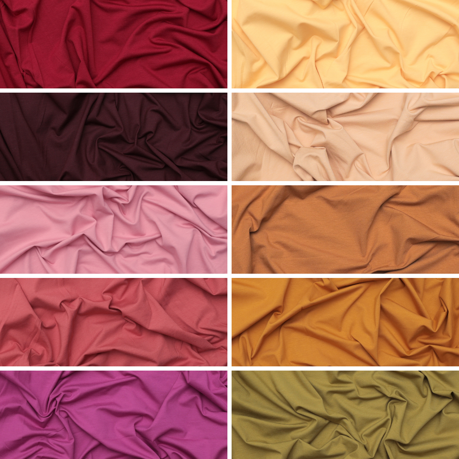 Discover the perfect knit cotton blend with our Perla Jersey! Experience the perfect amount of stretch for added comfort and a classic t-shirt structure that's just right for beginner sewists. Enjoy the soft feel and durability of this midweight fabric—and take on your next project with ease. With so many shades from vibrant to neutral, how can you choose just one?