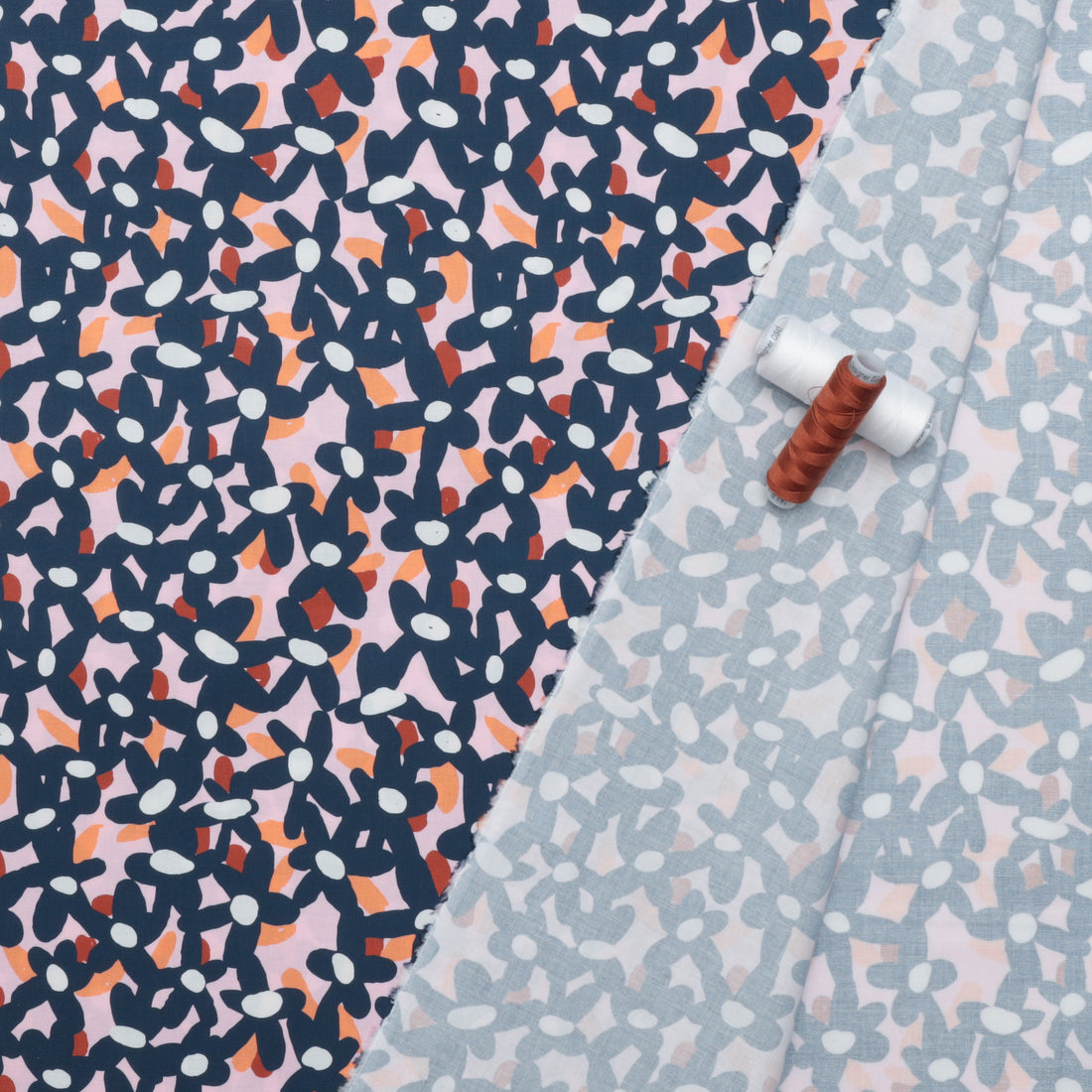 This Cotton + Steel fabric is perfect for quilting projects that require quality and style. Featuring navy flowers, orange dots, and a lilac background, this dense print provides a unique, eye-catching look. Create something beautiful with Whoopsie Daisy!