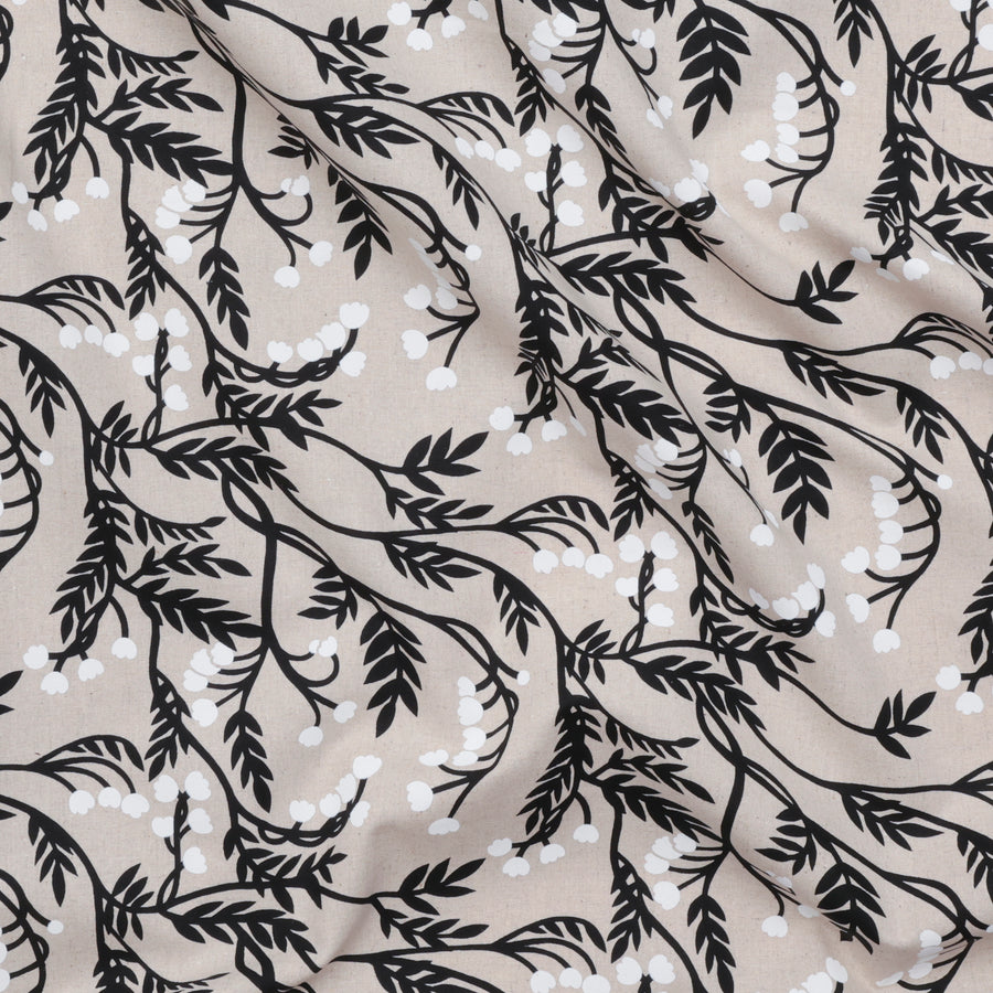 Experience the great outdoors with Figo's Cotton Linen Grove. This fabric combines the best of both worlds, with the softness of cotton and the strength of linen. The black branches with white berries print brings a touch of playful sophistication to any project. Add a natural feel to your sewing with Figos' Cotton Linen.