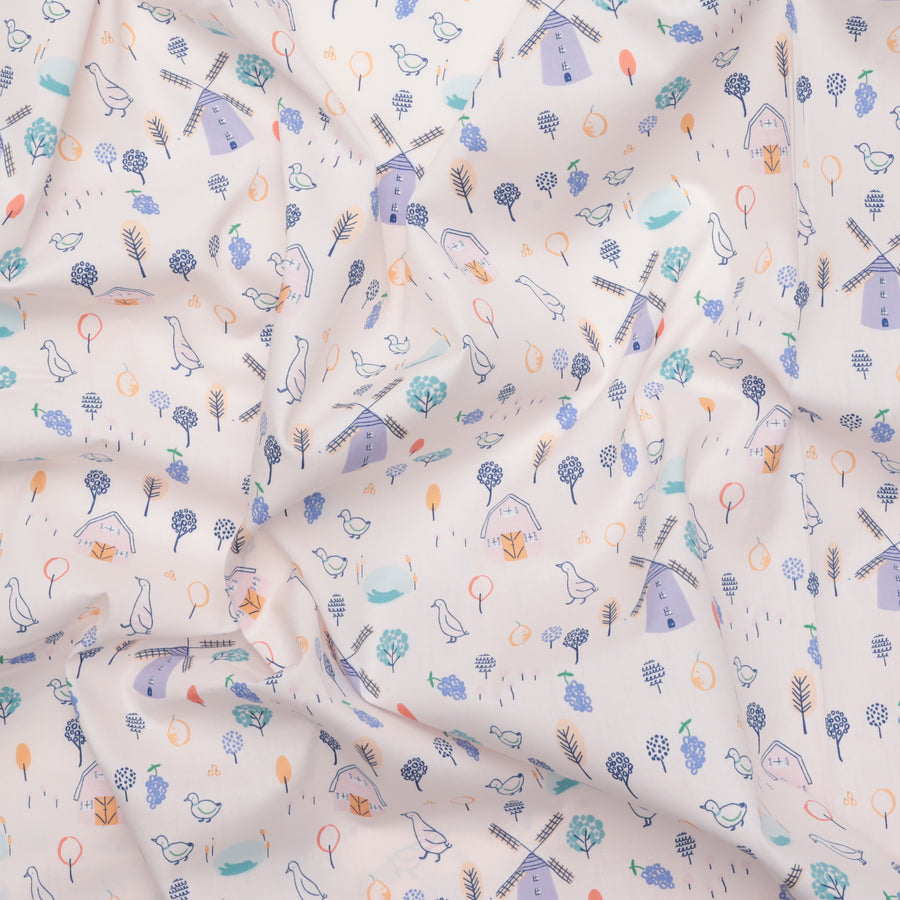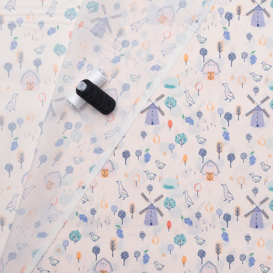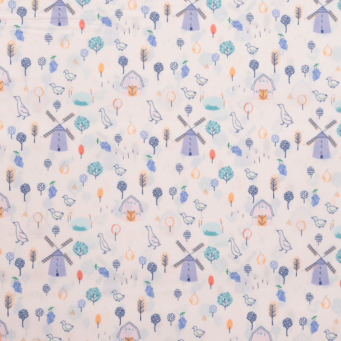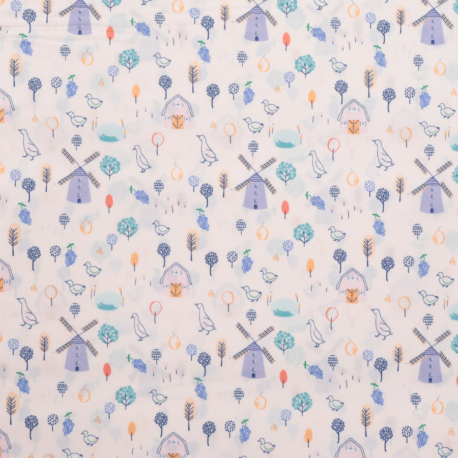 Waddle into the wild with Katia's Cotton Poplin Ducks Landscape fabric! The lightweight fabric will make comfy clothes that flow in the breeze and keep you cool in the summer sun. Enjoy the sights of the pastoral landscape, with its abundant windmills, ducks, and trees.