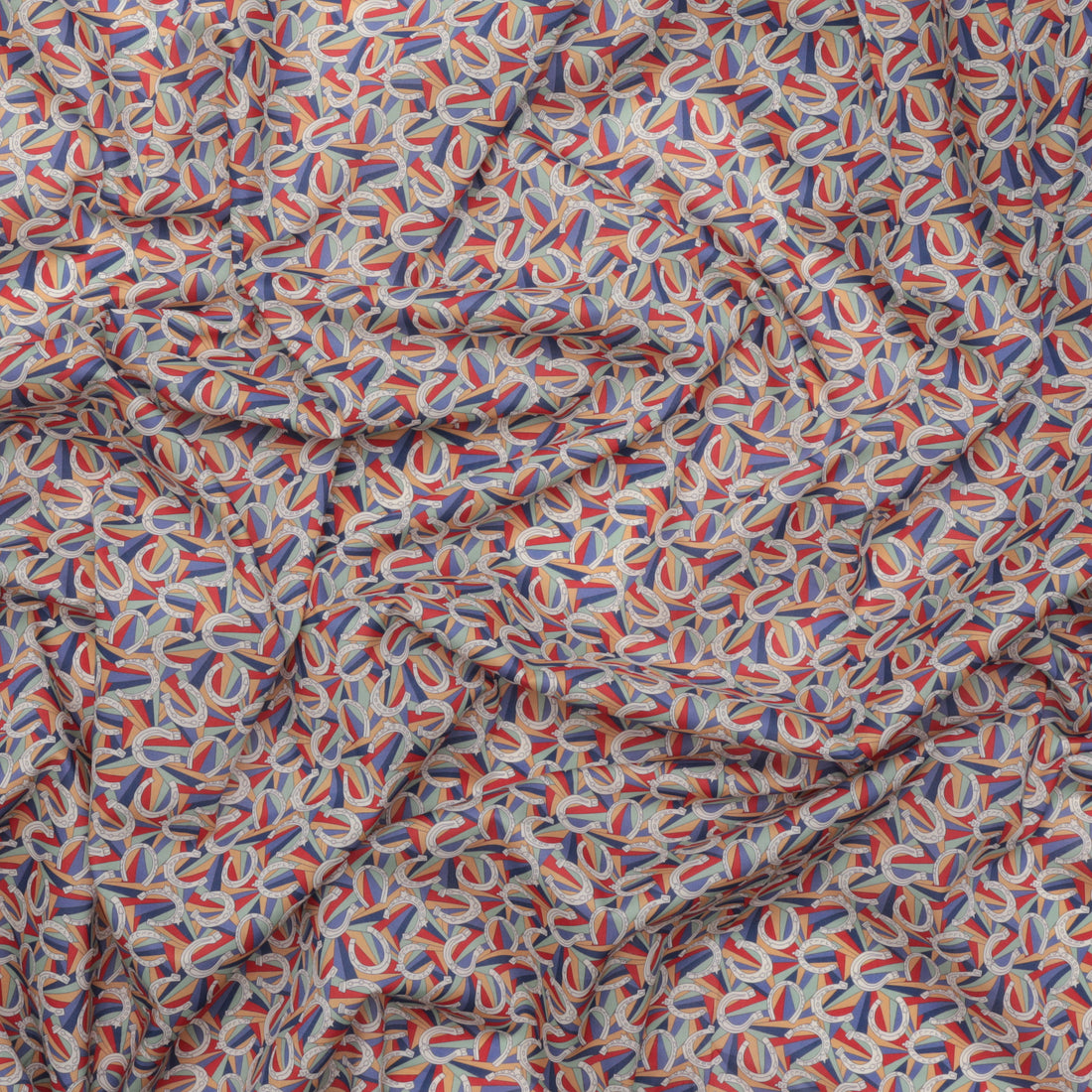 Bring a burst of retro vibrancy to your wardrobe with Liberty's "Derby Day" Tana Lawn fabric! This lightweight, vibrant fabric features playful horseshoes and colorful rainbows. Upgrade your wardrobe with this timeless fabric!