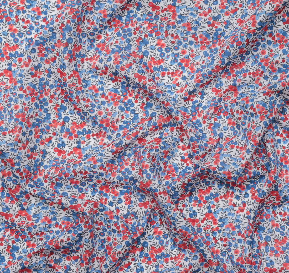 Originally created in 1933 by the designer with the initials DS, the leaf and berry pattern of Wiltshire has been a staple in Liberty Fabrics. The design was given a refresh in 1968, and since 1979, it has been a beloved member of the Classics collection. This lightweight fabric, with its red and blue berries nestled in delicate foliage atop a crisp white background, is ready to bring vibrant summer vibes to your wardrobe today! Get ready to shine and create stunning looks with Liberty!