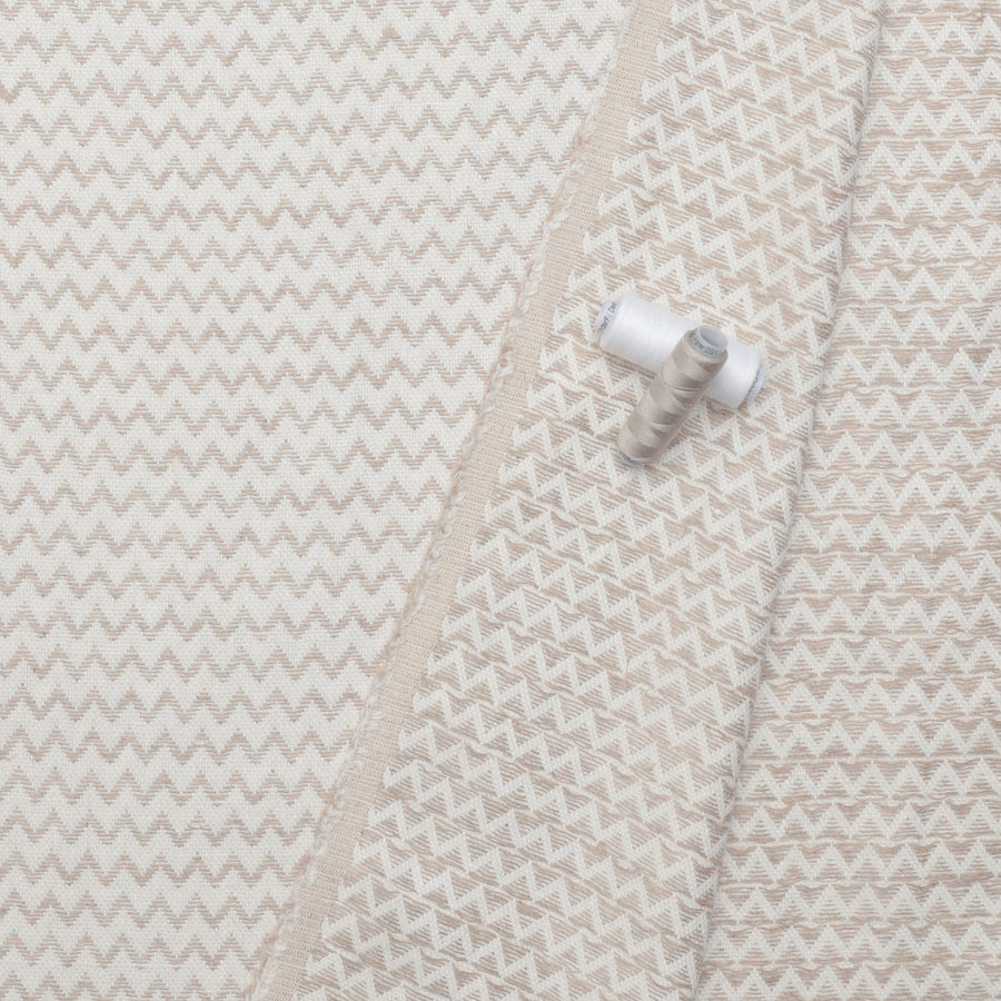 Elevate your wardrobe with our Linen Plaid Weave! Designed with a chic chevron pattern, this midweight garment fabric adds a touch of sophistication to your attire. Crafted in cream and ivory hues, it's the perfect blend of style and comfort.