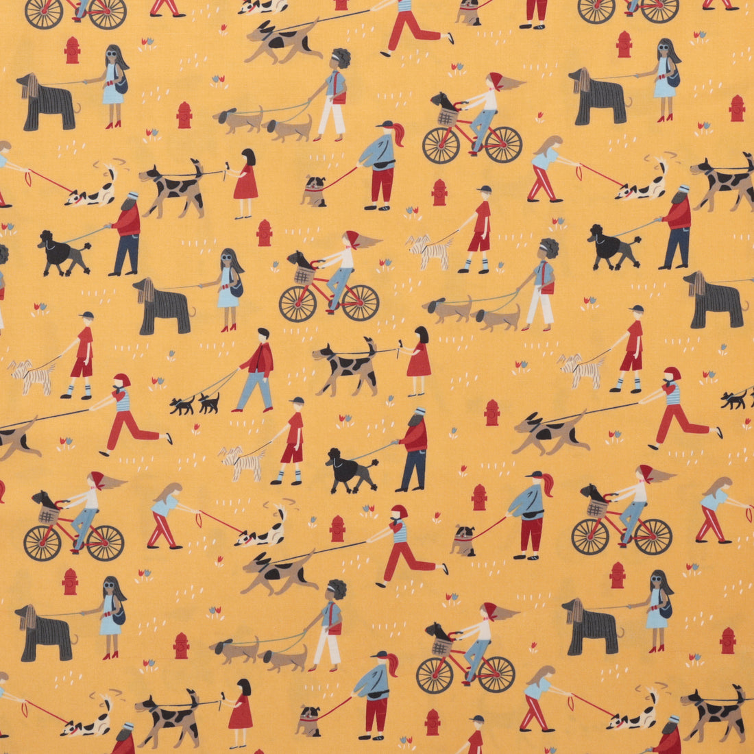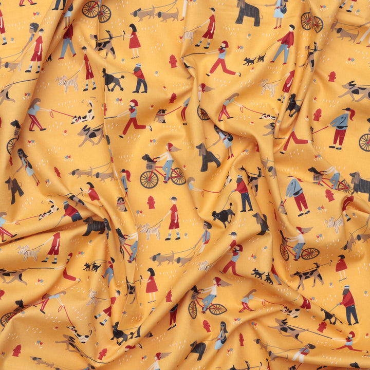 Walk your pup in style with this colorful Moda quilting cotton! This fun fabric makes every daily walk more lively and active - sure to get tails wagging! Featuring people pet owners walking their pooches in a bright primary colour palette. Get your paws on this paw-some buttercup cotton and walk on!