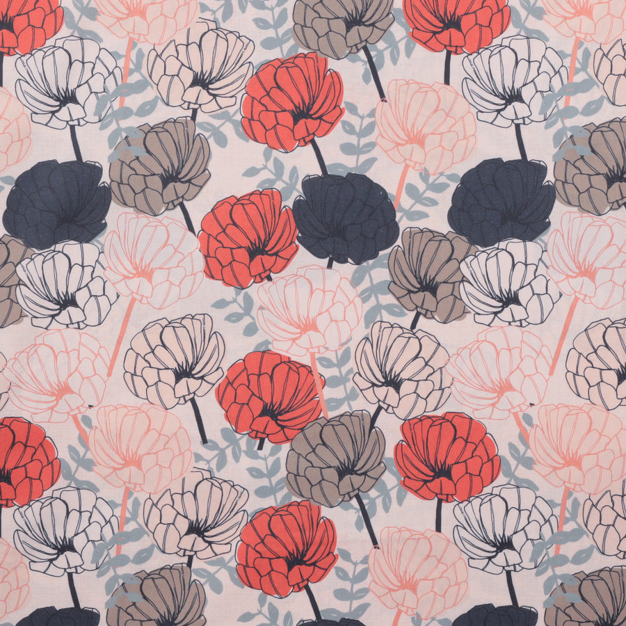 Let your imagination take a stroll with the Paintbrush Studio Cotton - A Walk In The Woods. With its creamy background and a colorful garden of coral, blush, navy and tan flowers, plus a blaze of bright blue foliage, this large floral print will make any project bloom!