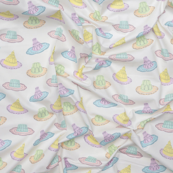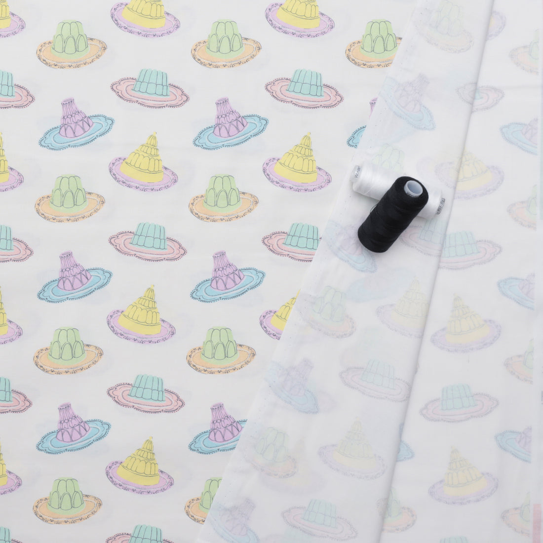 This fun and stylish Paintbrush Studio Cotton fabric is the perfect way to add some color with some jello treats on the frame! The white background showcases delicious jello treats in lovely light shades of green, blue, orange, pink , and purple. A perfect pairing for your next project. Jello there!