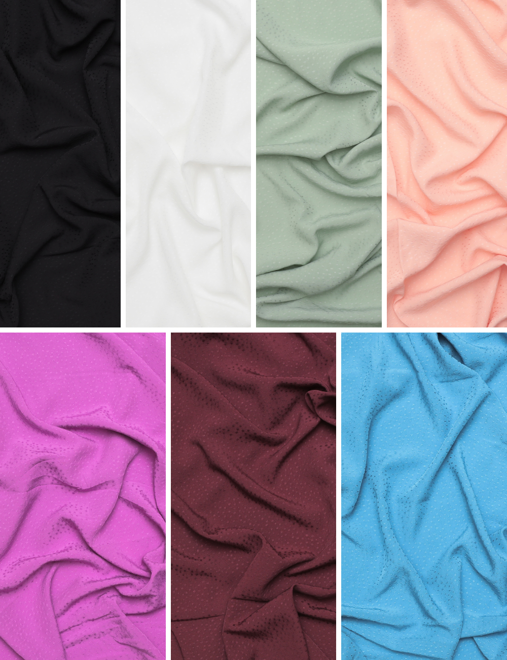 Experience the luxurious feel and fluid draping of our Rayon - Poppy Dobby fabric. This lightweight material boasts tone-on-tone dots for a subtle yet stylish texture. Elevate your projects with this versatile fabric!