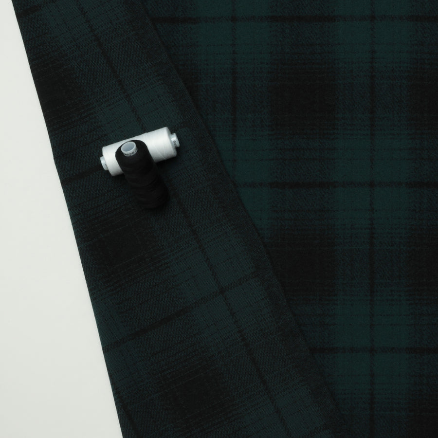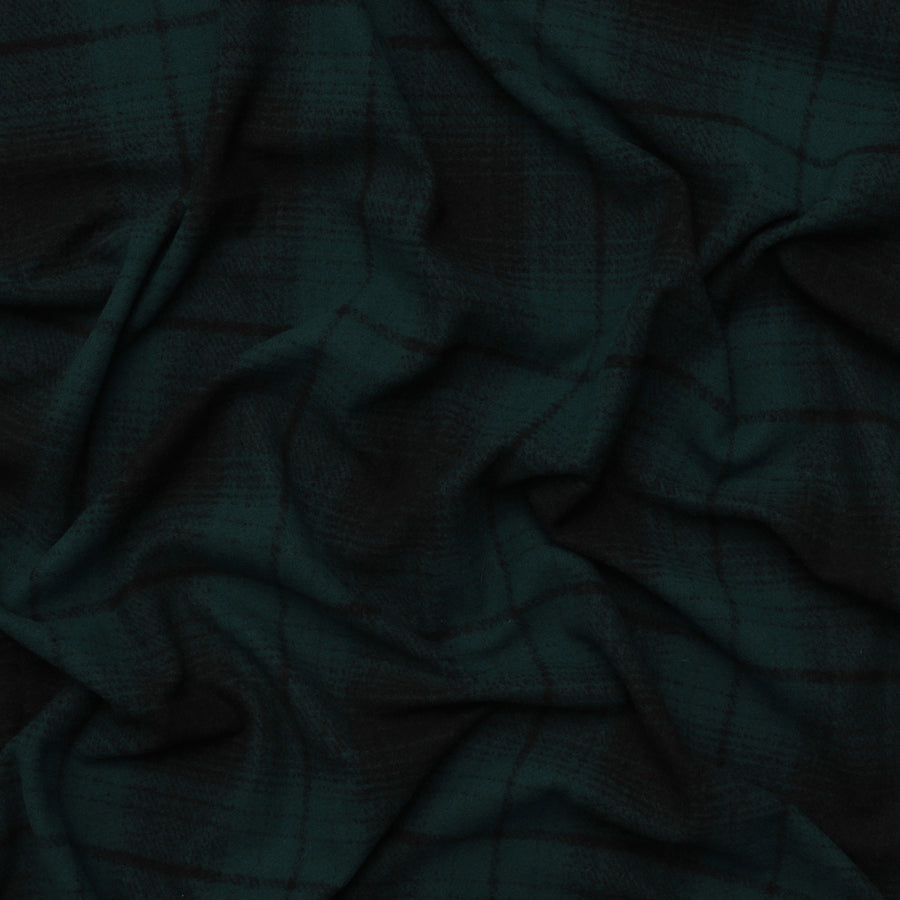 Elevate your style with our Recycled Poly - Brushed Plaid Knit - Forest fabric! Made from sustainable materials, this garment fabric features a striking black and green plaid design that adds a timeless touch to any outerwear. Upgrade your wardrobe while also supporting the environment. Try it now!