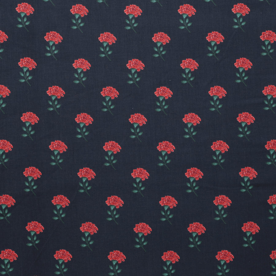 Create stunning quilts with Rifle Paper Co.'s Marisol cotton fabric! The vibrant colors of red carnations on a navy background create a beautiful, high contrast design that will wow your family and friends. Bring the vibrancy of nature into your home with Marisol!