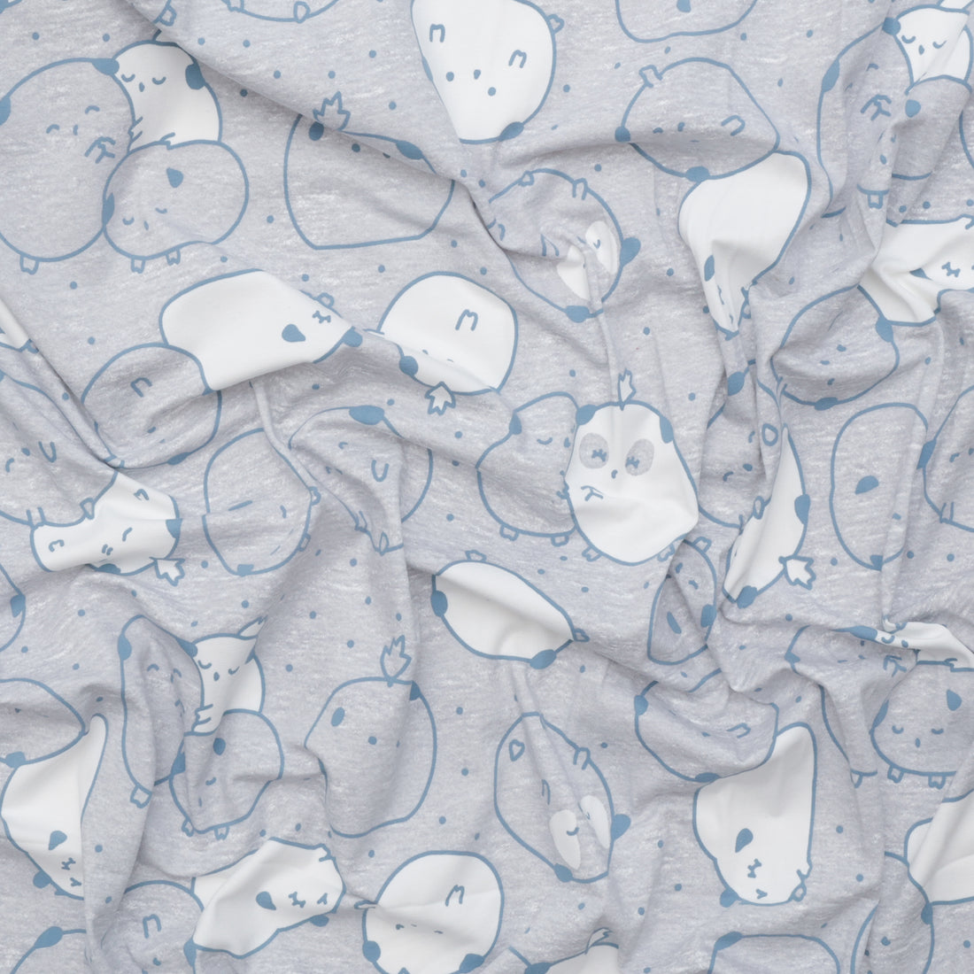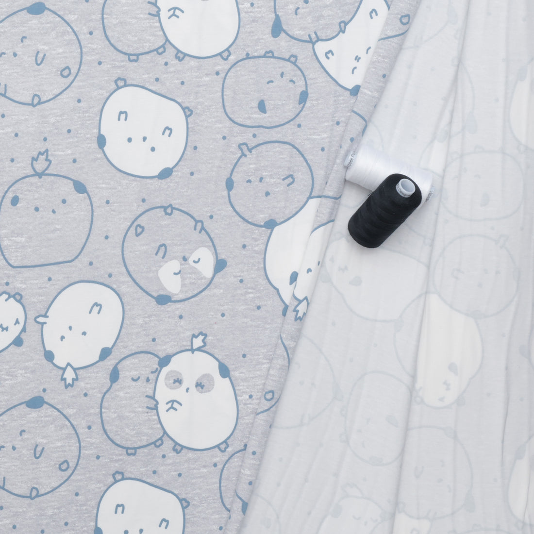 Bring fun to your wardrobe with this delightful Cotton Jersey fabric from Stof! Featuring charming round cartoon dogs in blue and white frolicking on a grey backdrop, it’s ideal for kids’ t-shirts, baby rompers, or cozy pajamas.