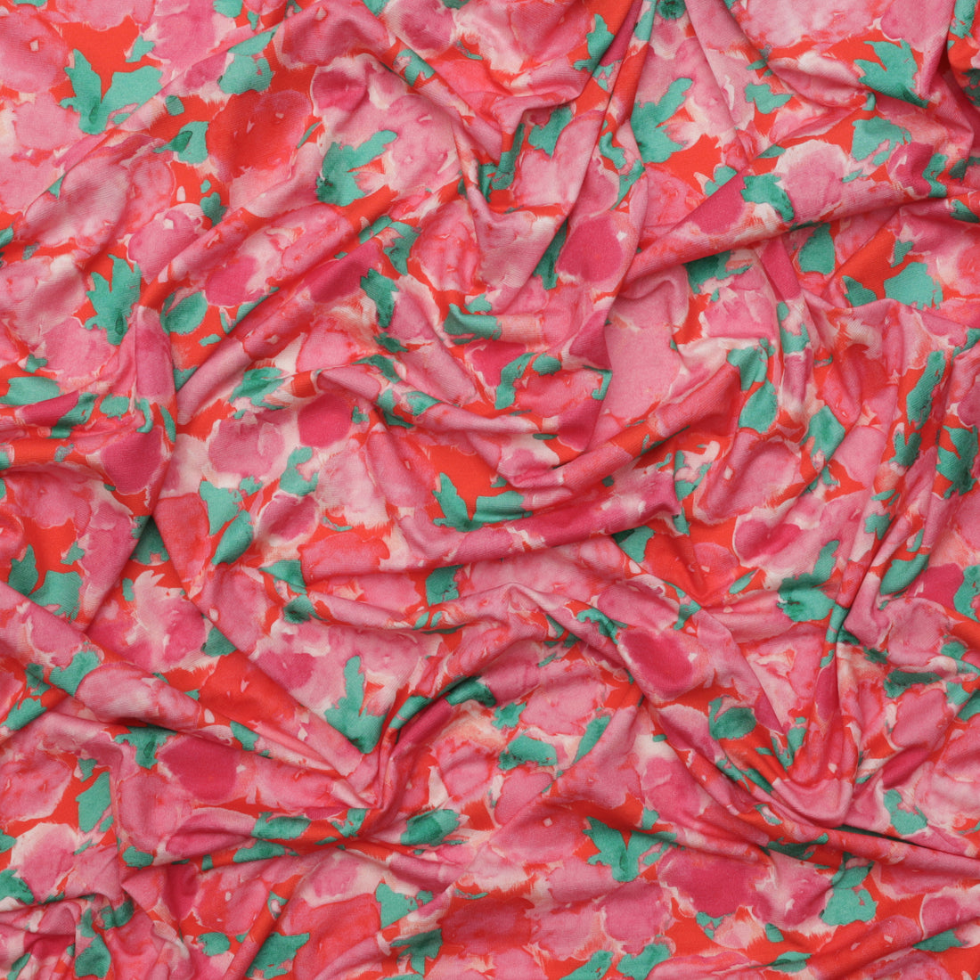 Experience luxurious comfort with this Viscose Blend - Melrose Knit - Digital Print! With its vibrant orange-pink hue and delicately printed florals, this garment fabric offers an eye-catching look. Its bold colors make it uniquely stylish, perfect for adding a touch of flair to your wardrobe. Can you feel the vibrancy?