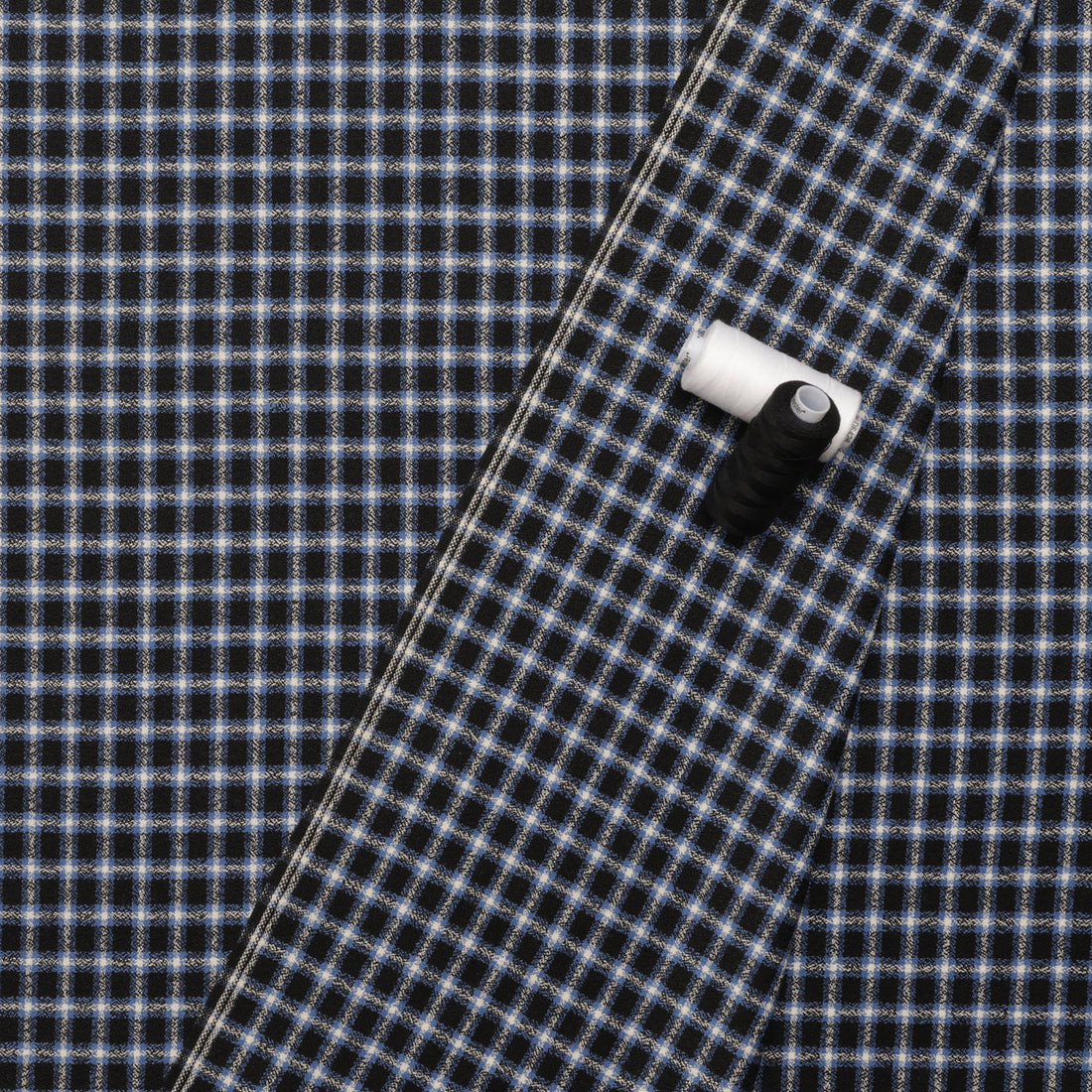 Wool - Suiting - Plaid - Blue Black White